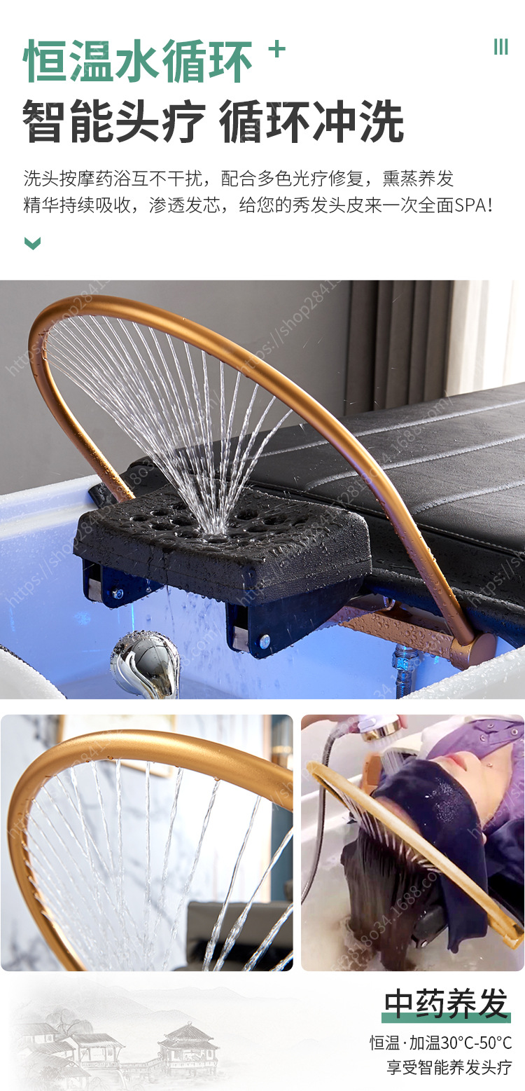 2025 nueva cama de terapia de cabeza sin conexión de agua, terapia de cabeza de masaje y belleza todo en uno multifuncional con almacenamiento de agua champú tailandés.