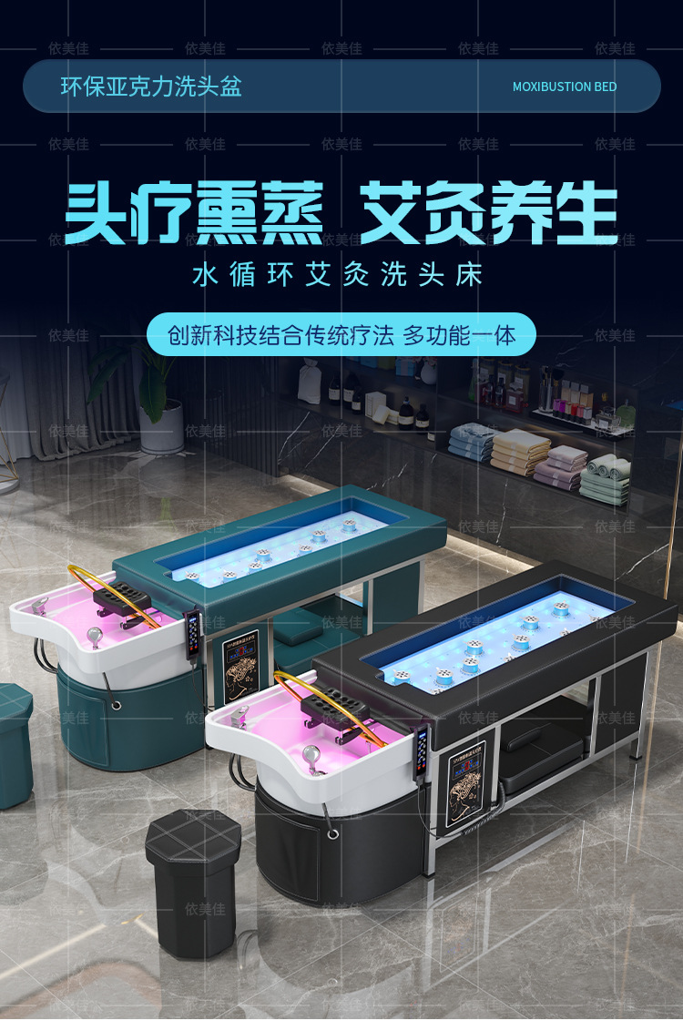 Fábrica libre de humo moxibustión cama tailandés cabeza tratamiento champú cama peluquería salón de belleza fumigación moxibustión de cuerpo entero