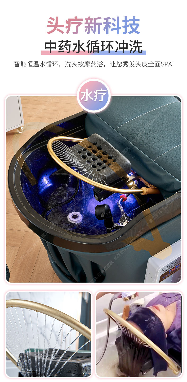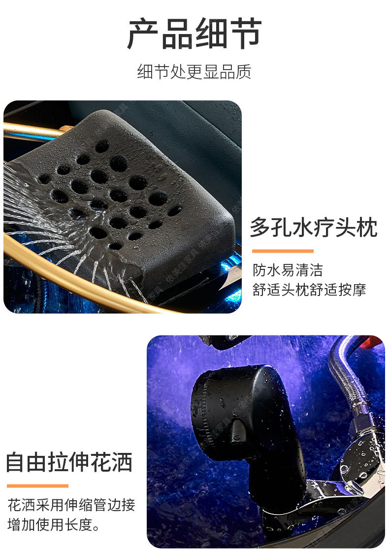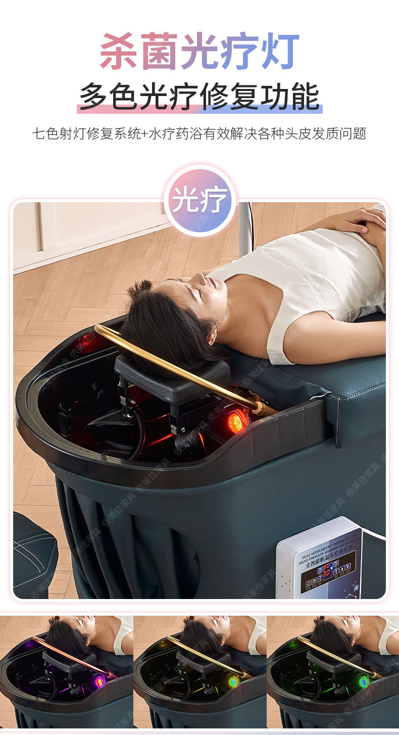 Terapia de cabeza tailandesa circulación de agua cama de champú peluquería especial salón de belleza oído recogiendo masaje de fumigación con calentador de agua