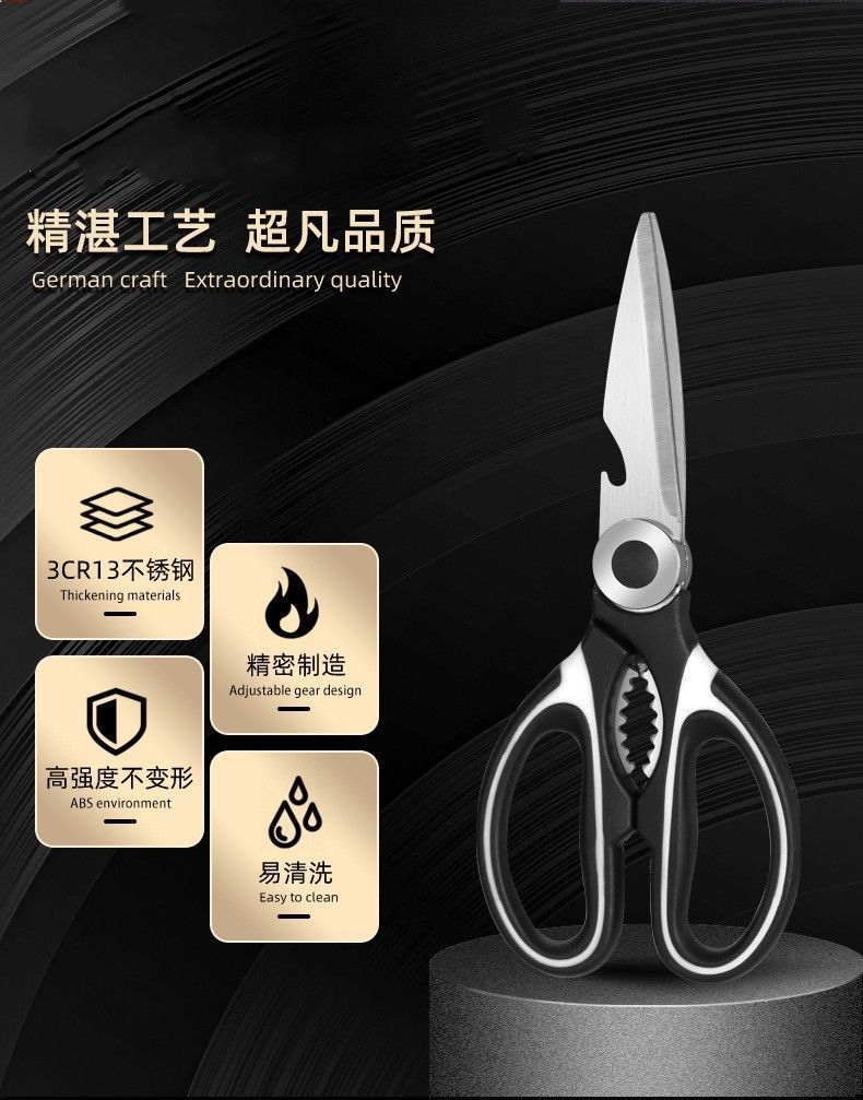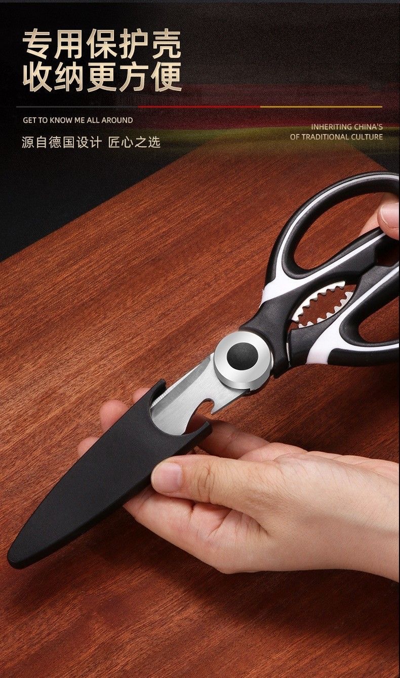 Acero inoxidable fuerte hueso de pollo alemán tijeras de cocina domésticas espesadas tijeras de carne multifuncional tijeras de panda diarias