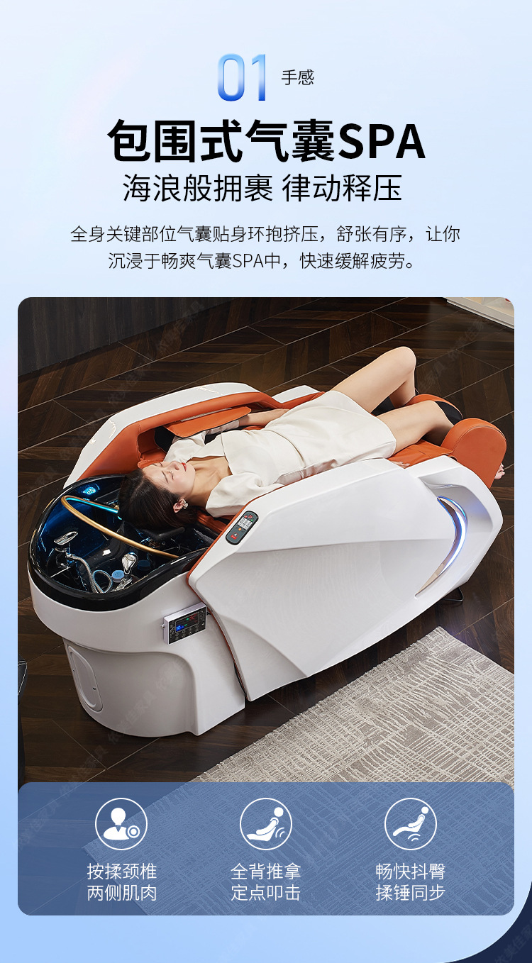 Cama de Champú Eléctrica para Masajes, Salón de Belleza, Cama de Champú Totalmente Automática, Máquina Multifuncional de Terapia Capilar con Circulación de Agua y Fumigación