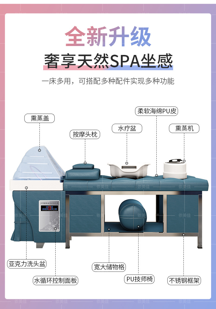 Cama de champú de acero inoxidable peluquería especial peluquería champú para el cabello tienda de cuidado del cabello tailandés circulación de agua cama de masaje