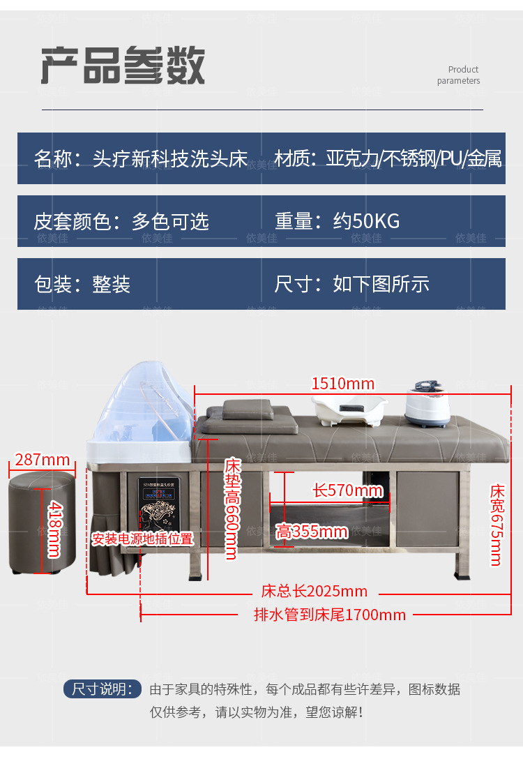 Tailandés cama de champú de acero inoxidable peluquería cama de champú especial circulación de agua cabeza terapia cama masaje cama humeante