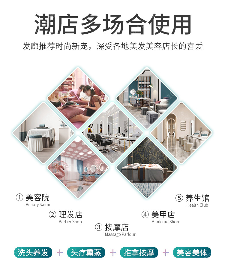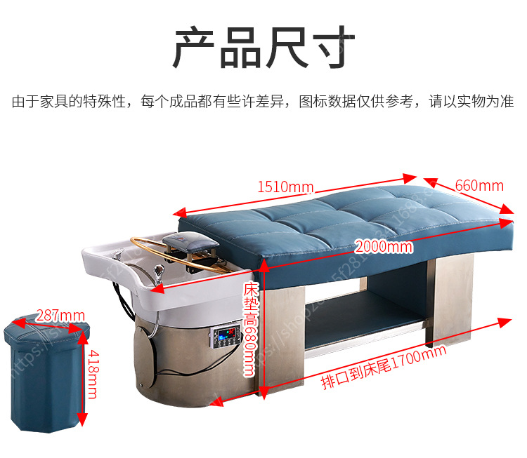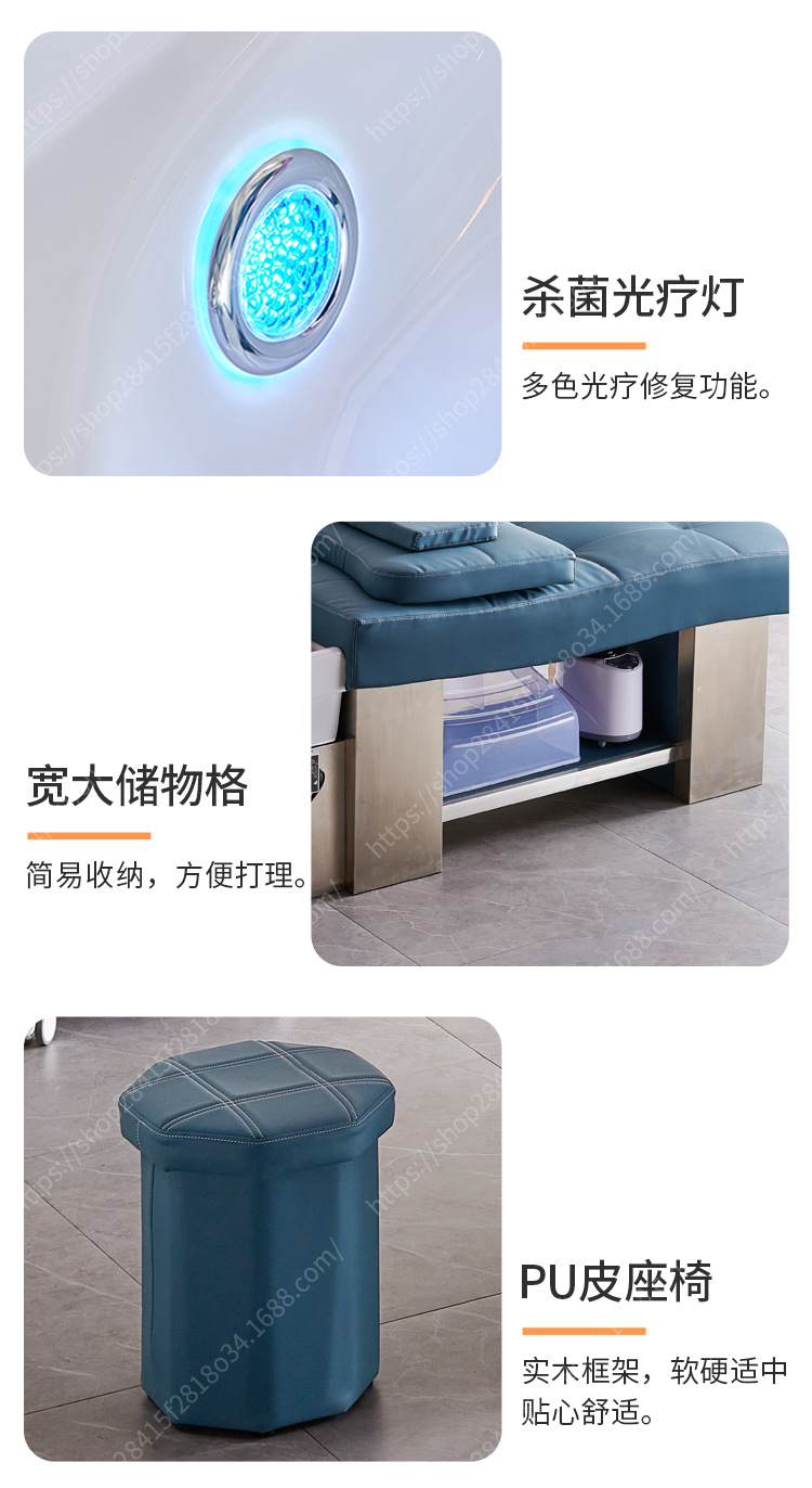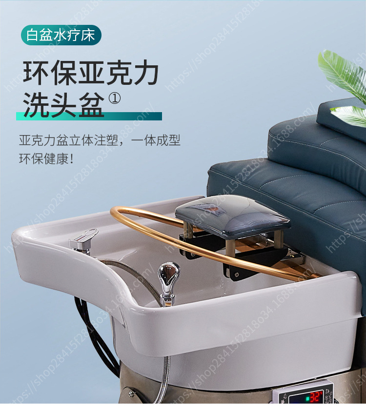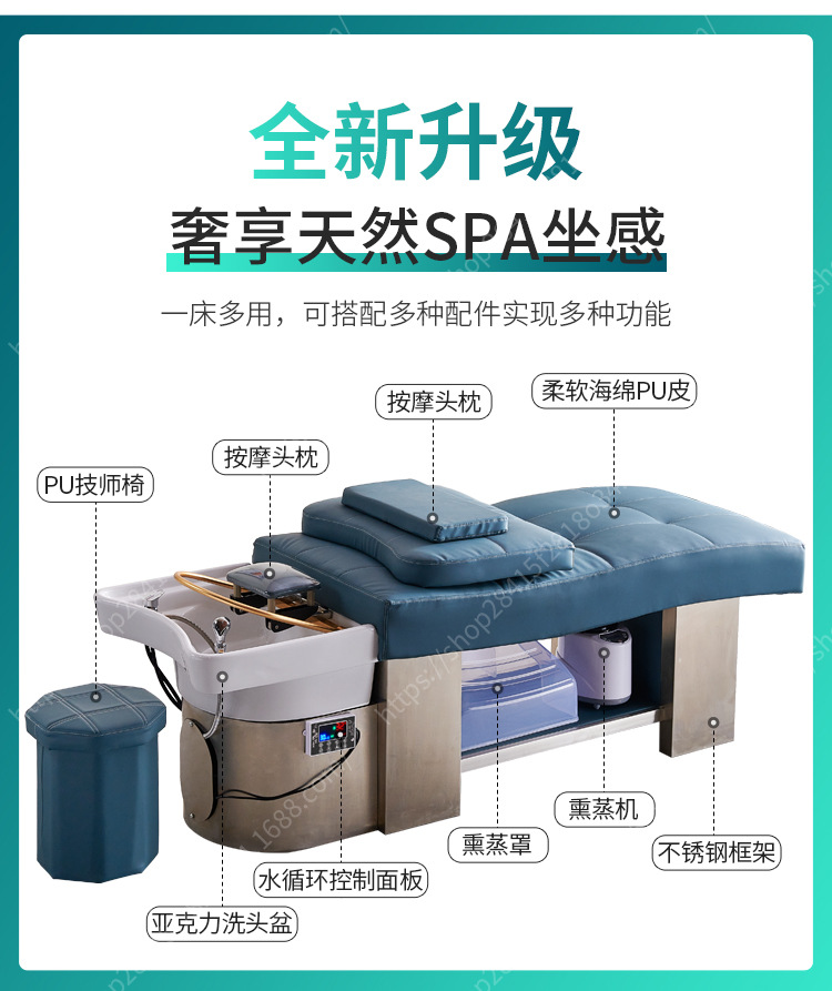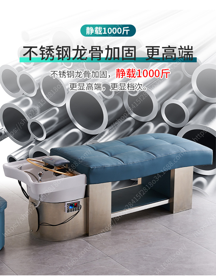 De alta gama de cerámica lavabo de acero inoxidable champú cama calentador de agua peluquería circulación tienda de peluquería plana mentira fumigación masaje