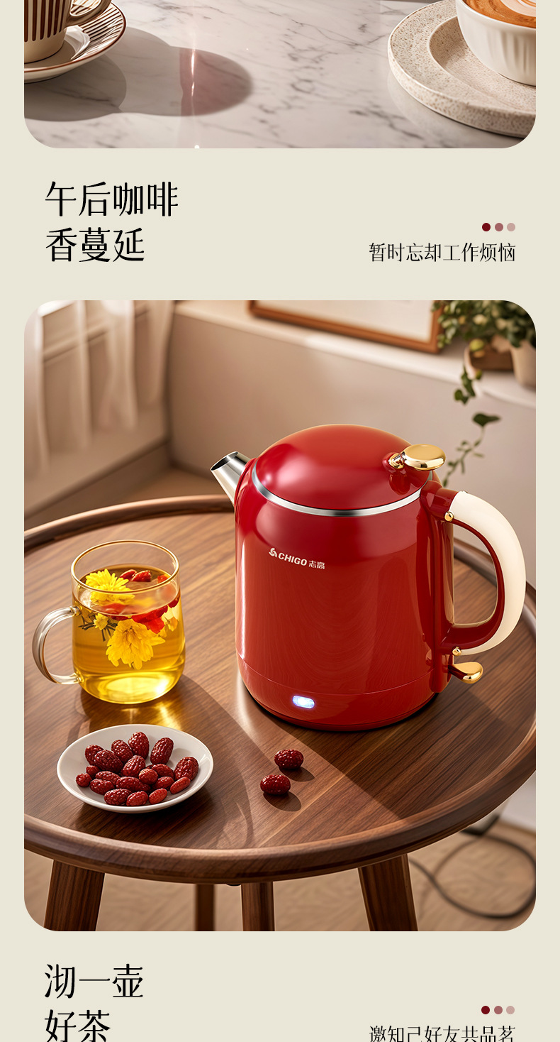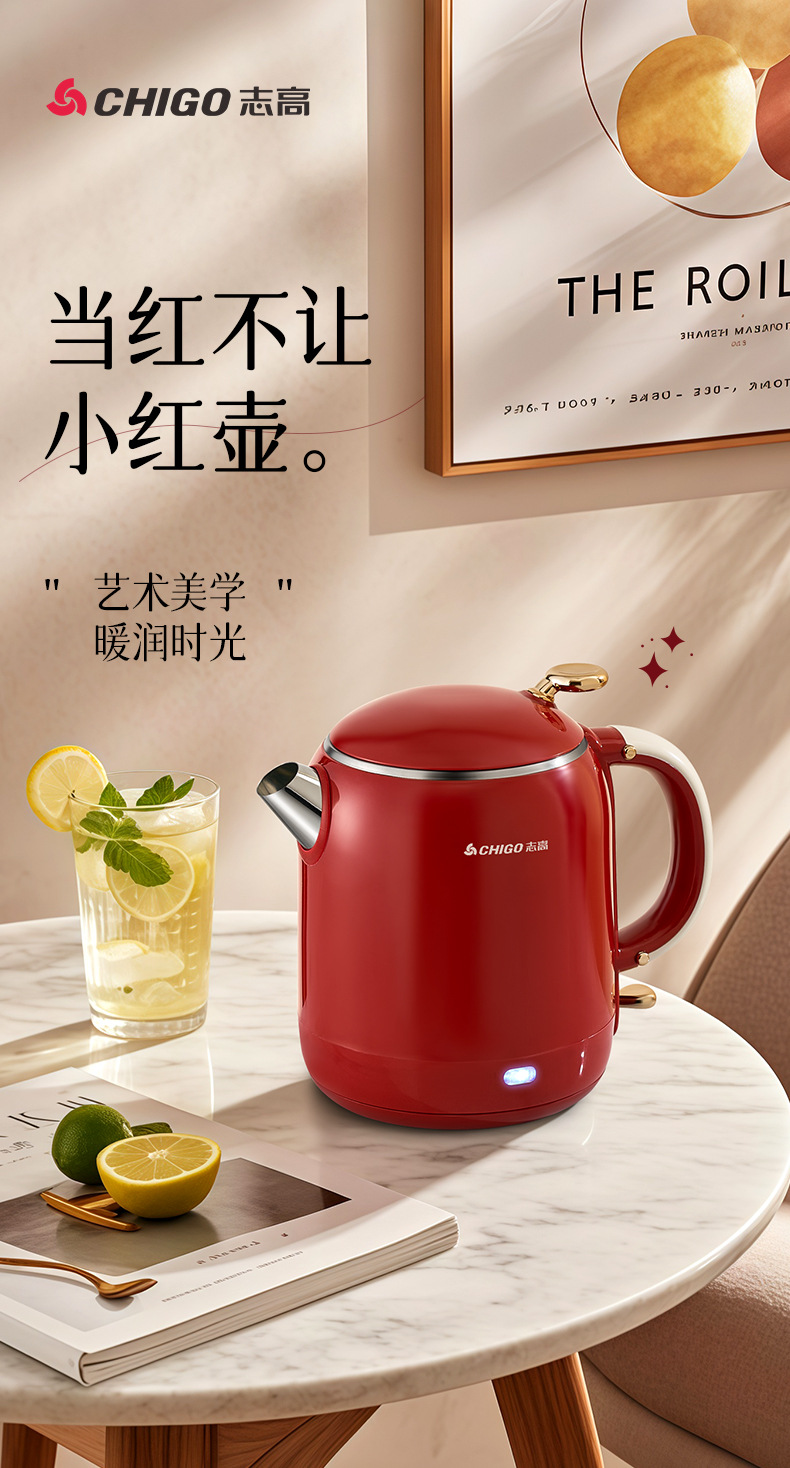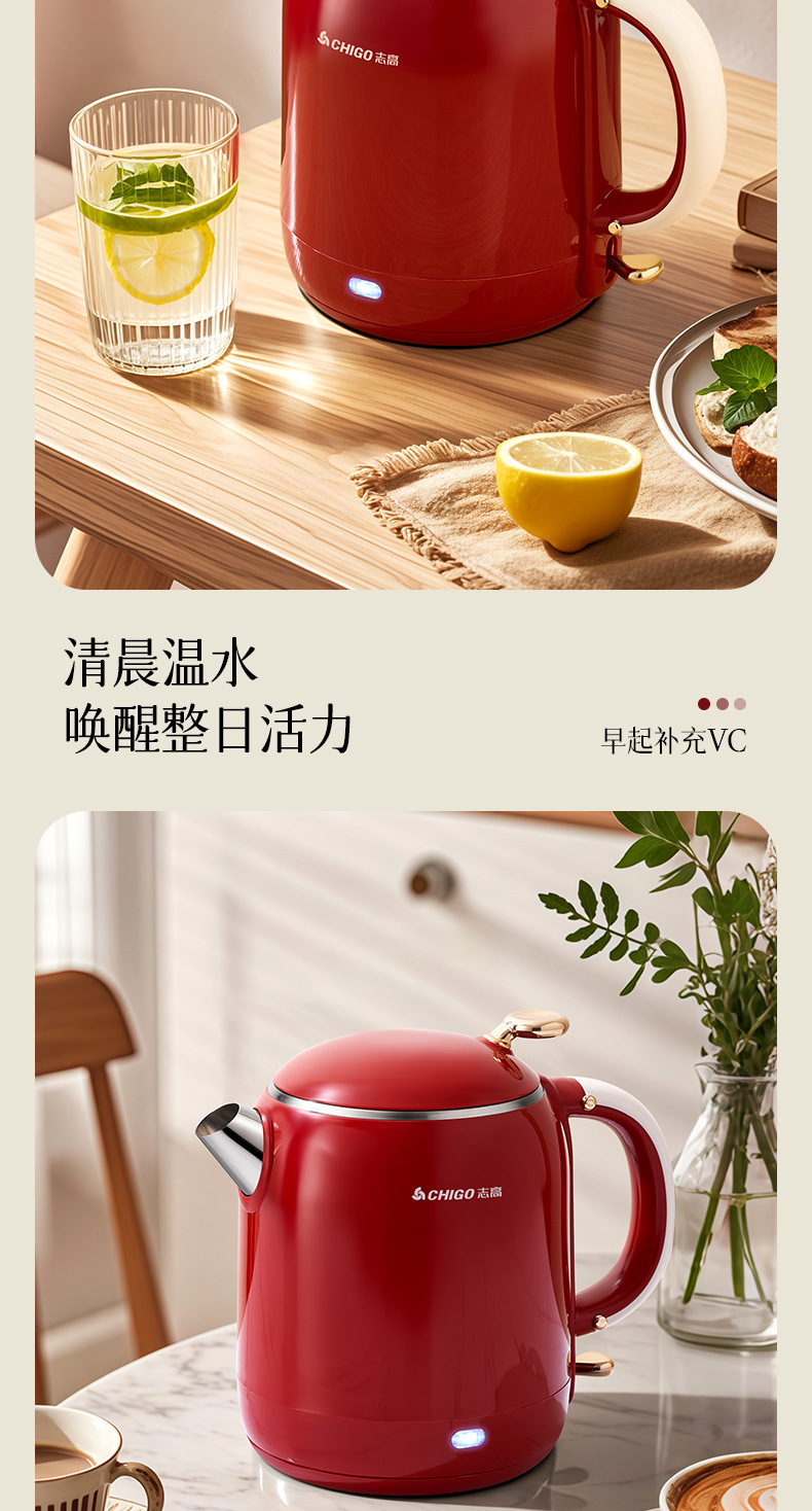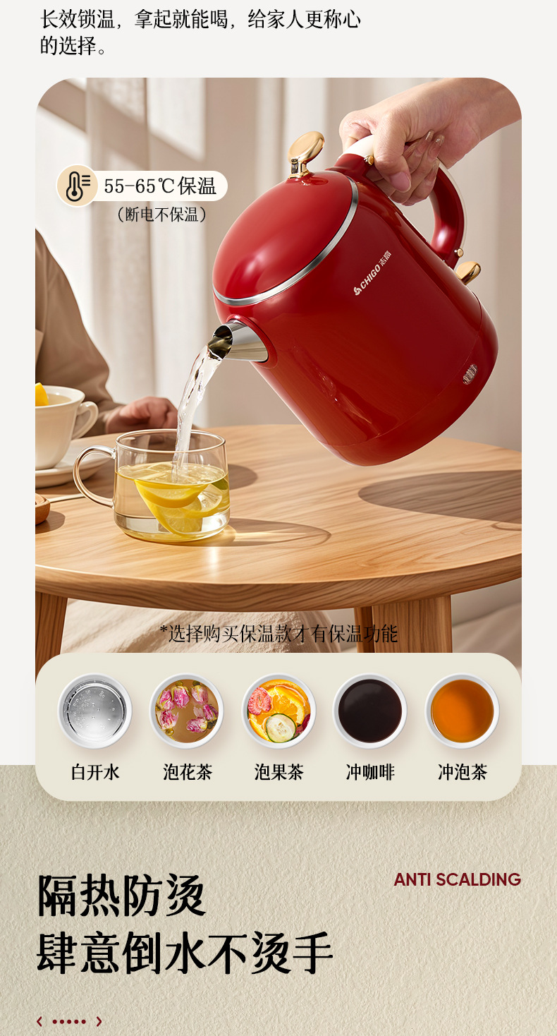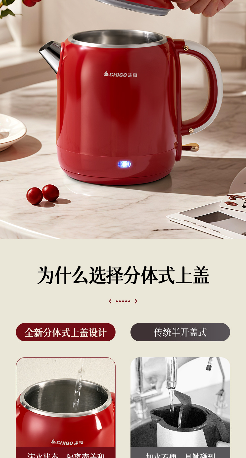 Hervidor eléctrico Chigo, aislamiento térmico de acero inoxidable para el hogar, hervidor de agua abierto integrado, calentamiento rápido, apagado automático de gran capacidad, olla de temperatura constante