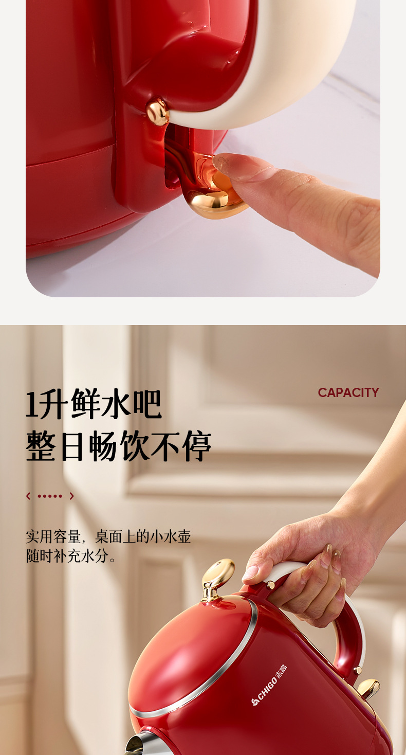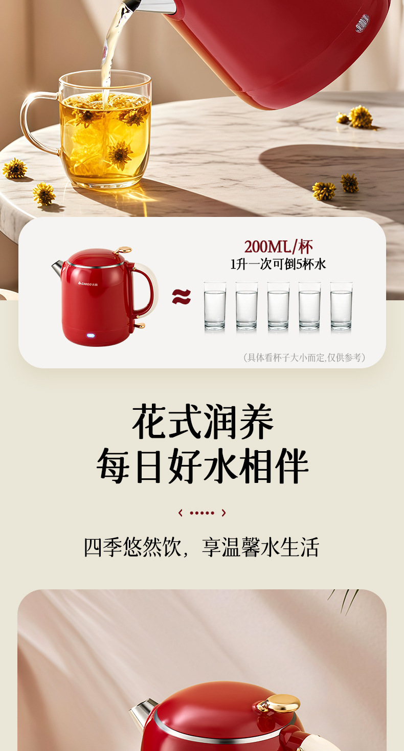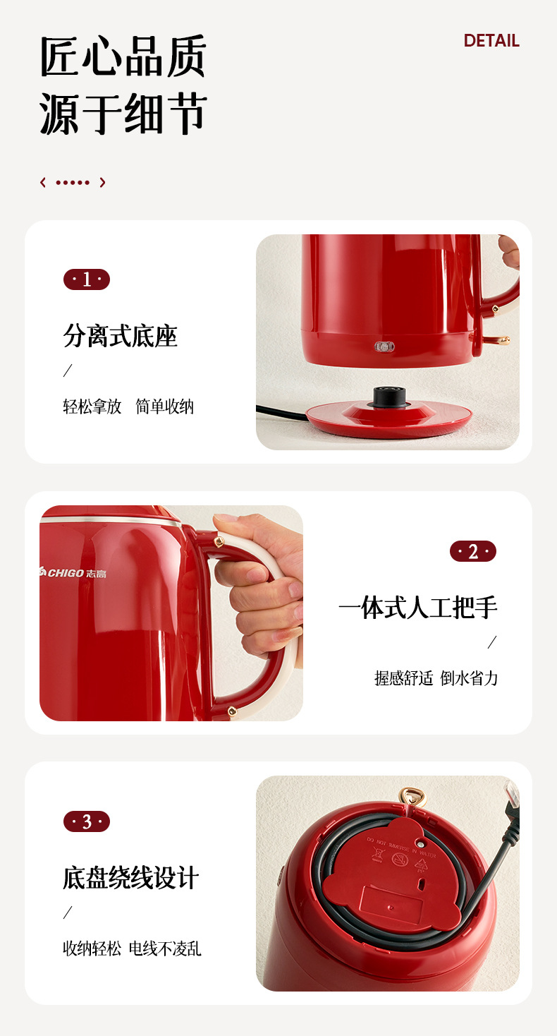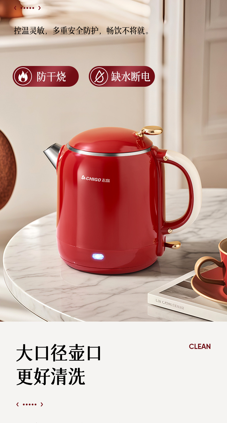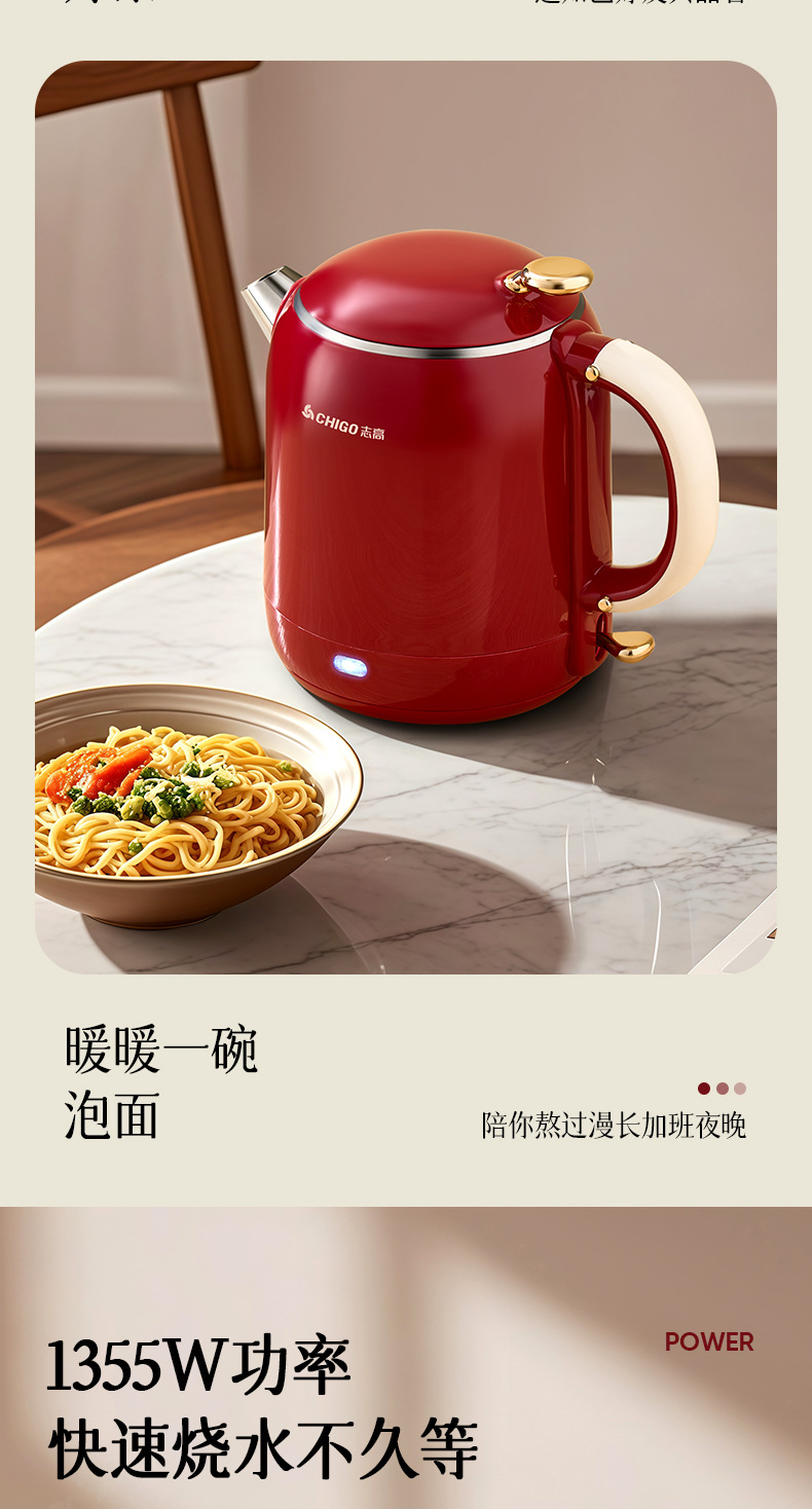 Hervidor eléctrico Chigo, aislamiento térmico de acero inoxidable para el hogar, hervidor de agua abierto integrado, calentamiento rápido, apagado automático de gran capacidad, olla de temperatura constante