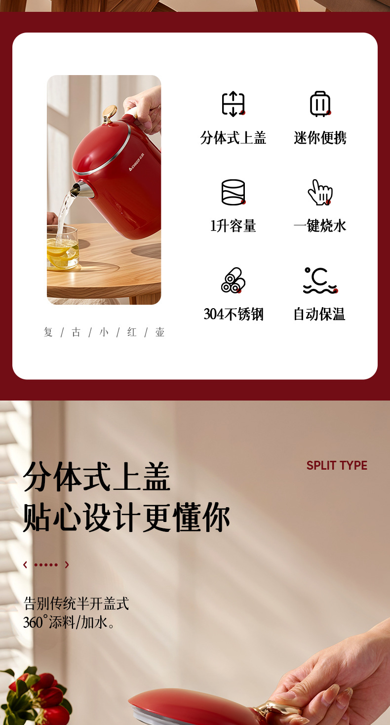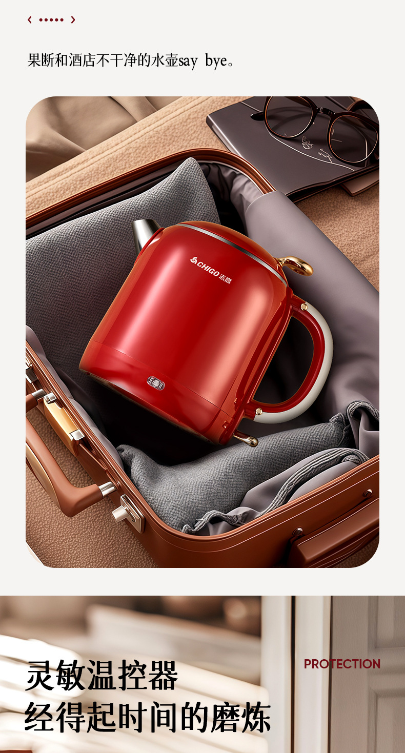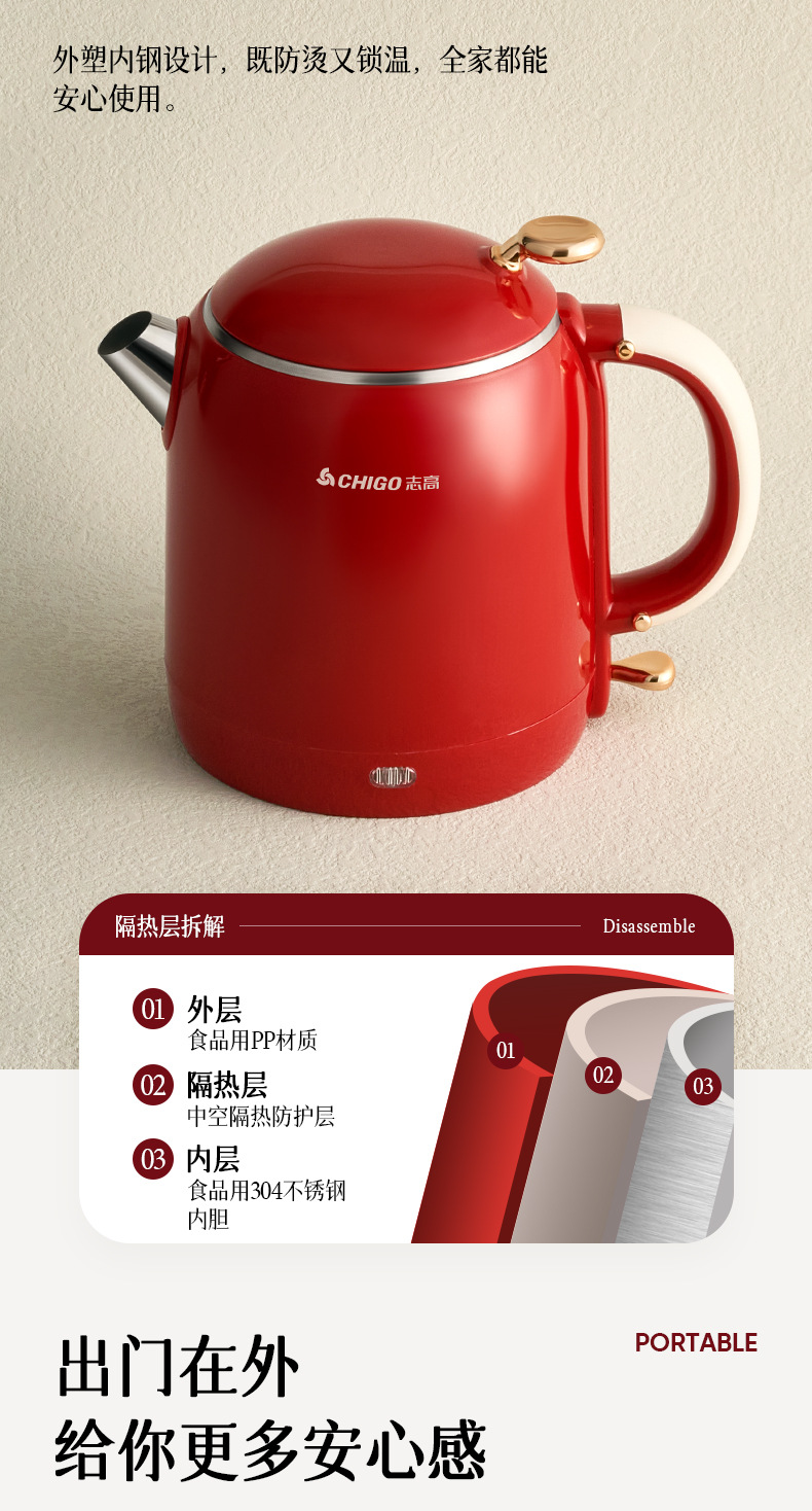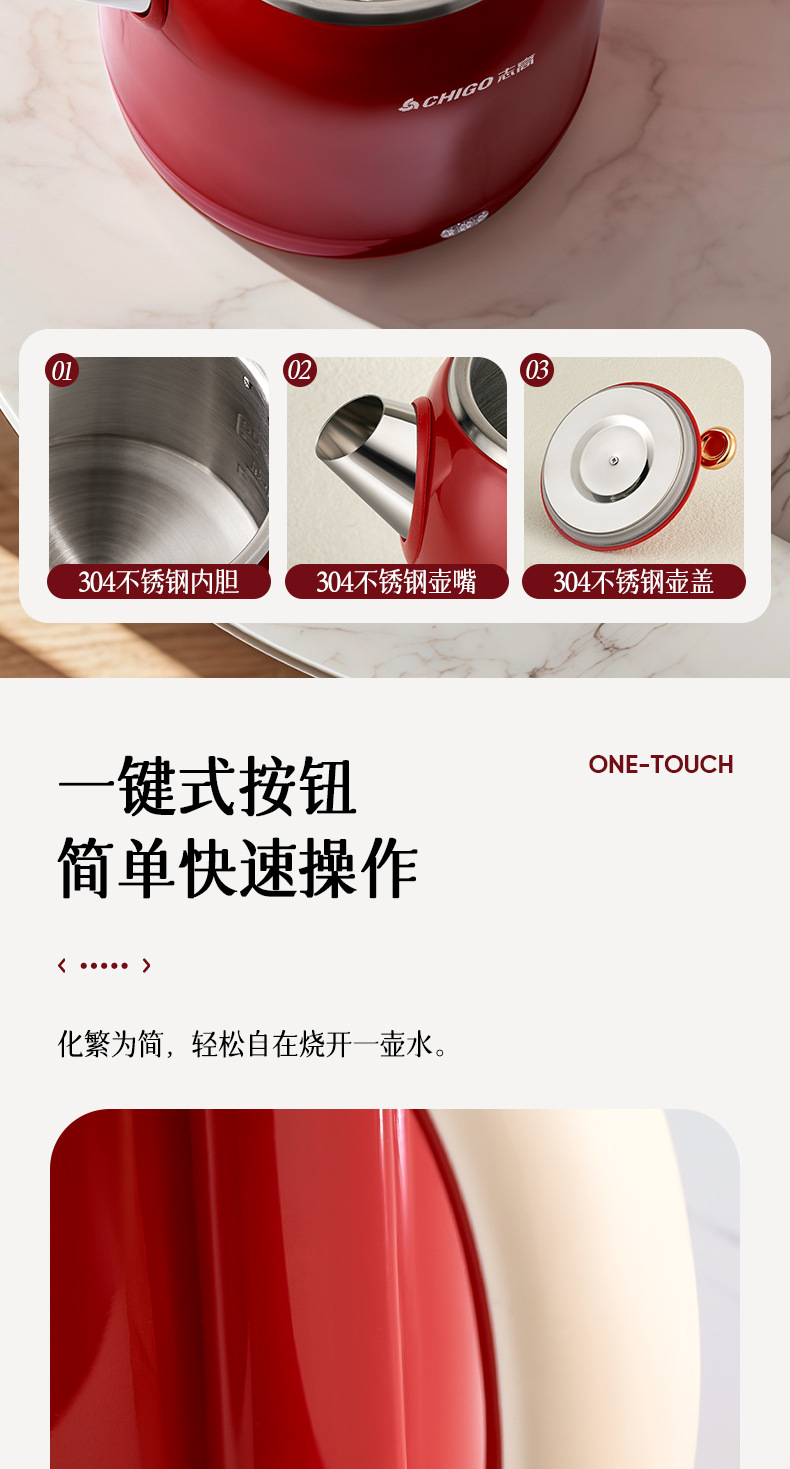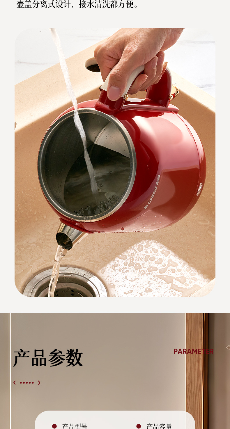 Hervidor eléctrico Chigo, aislamiento térmico de acero inoxidable para el hogar, hervidor de agua abierto integrado, calentamiento rápido, apagado automático de gran capacidad, olla de temperatura constante