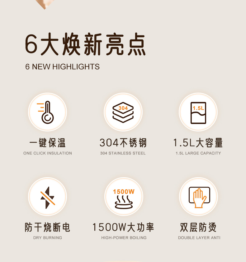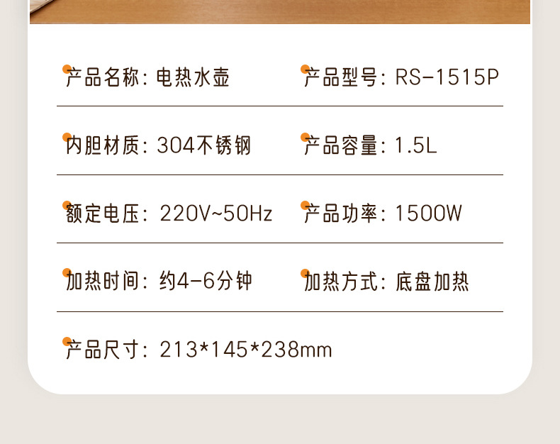 | Velocidad de calentamiento del hervidor eléctrico | 4 minutos (inclusive)-6 minutos (inclusive) |