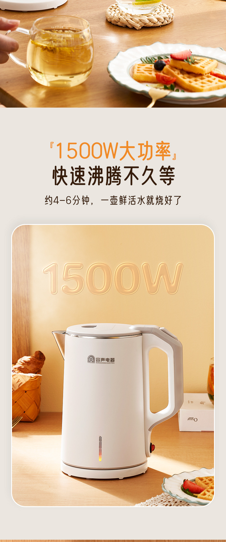 Rongsheng Hervidor Eléctrico Hervidor de agua aislamiento del hogar integrado automático de gran capacidad de acero inoxidable Hervidor de agua