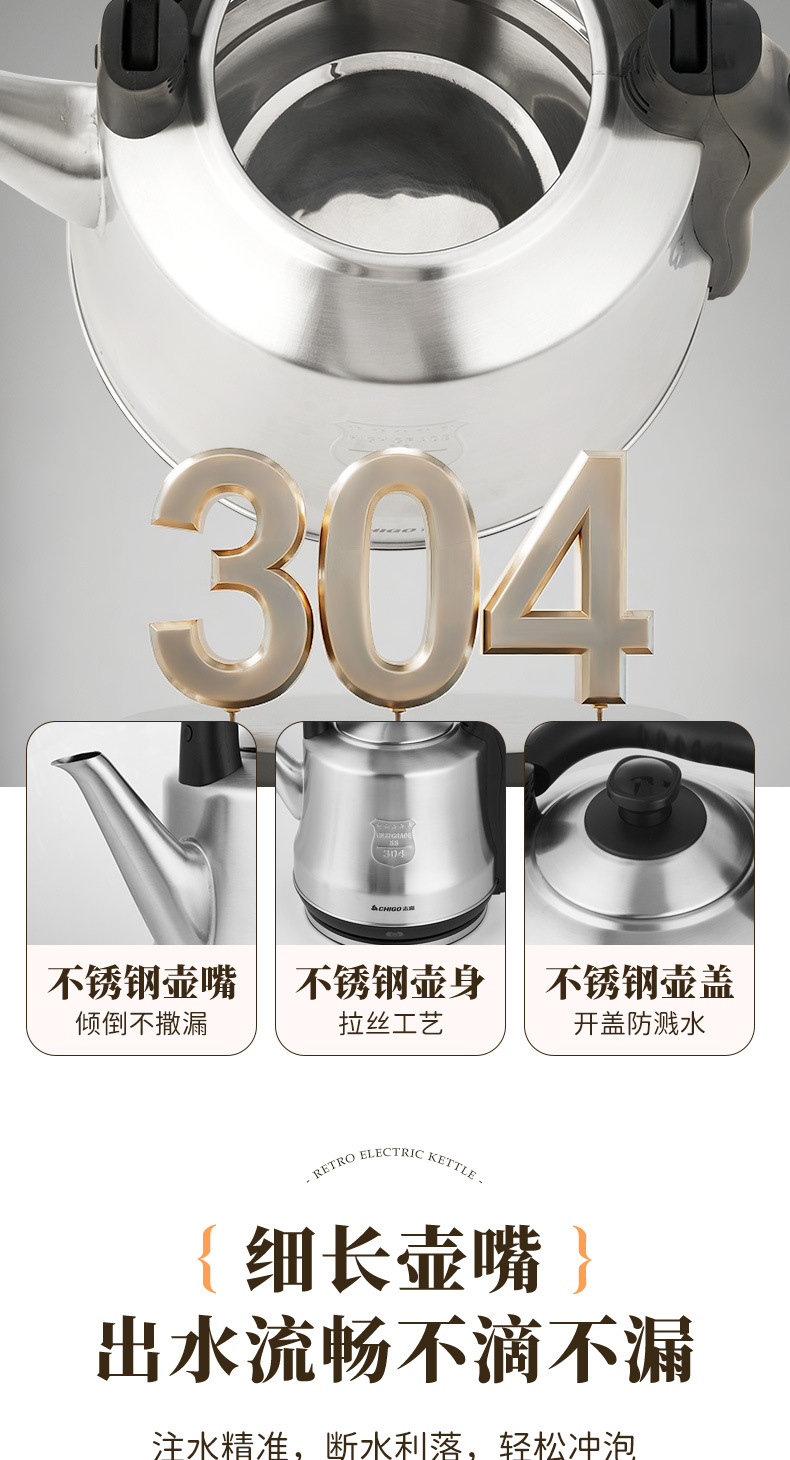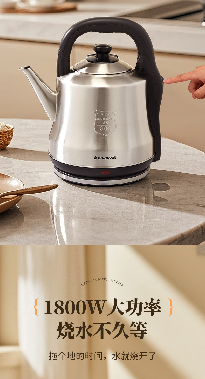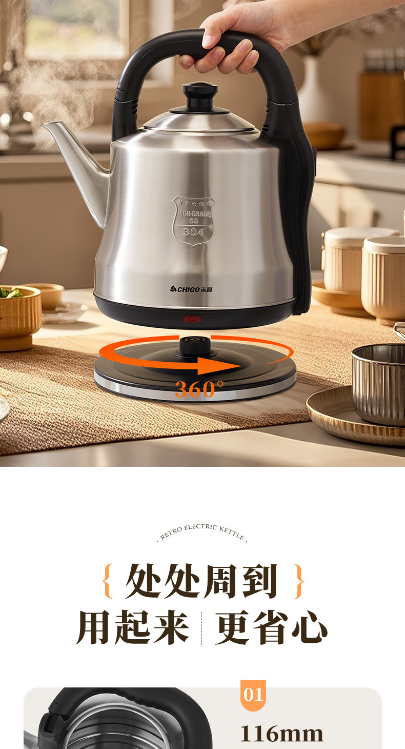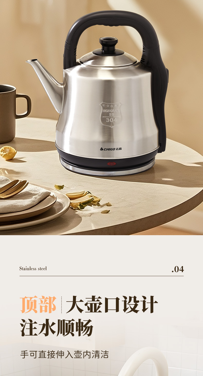 Zhigao hervidor eléctrico 304 hervidor de acero inoxidable 2025 nuevo tipo de hervidor doméstico de gran capacidad apagado automático