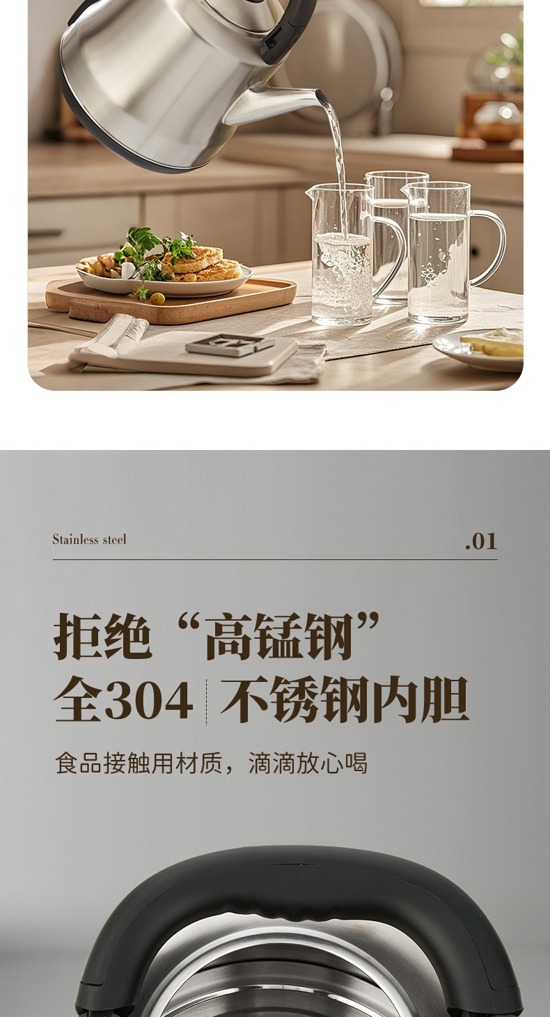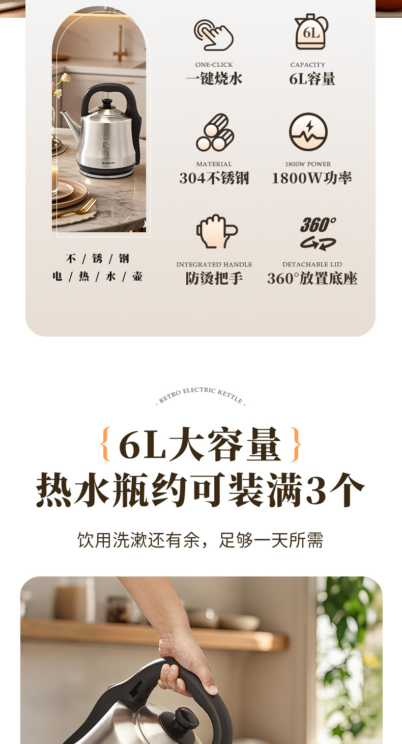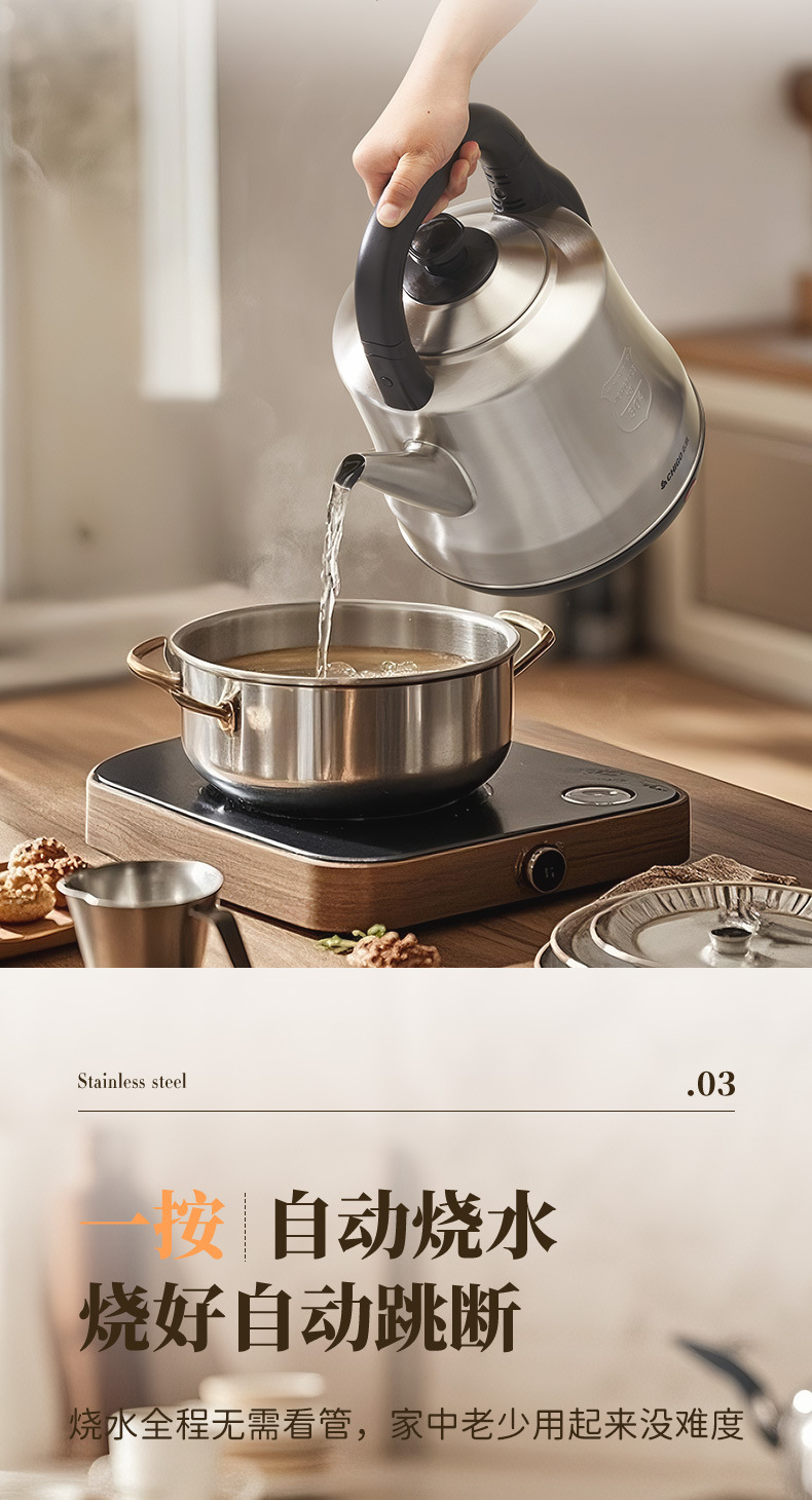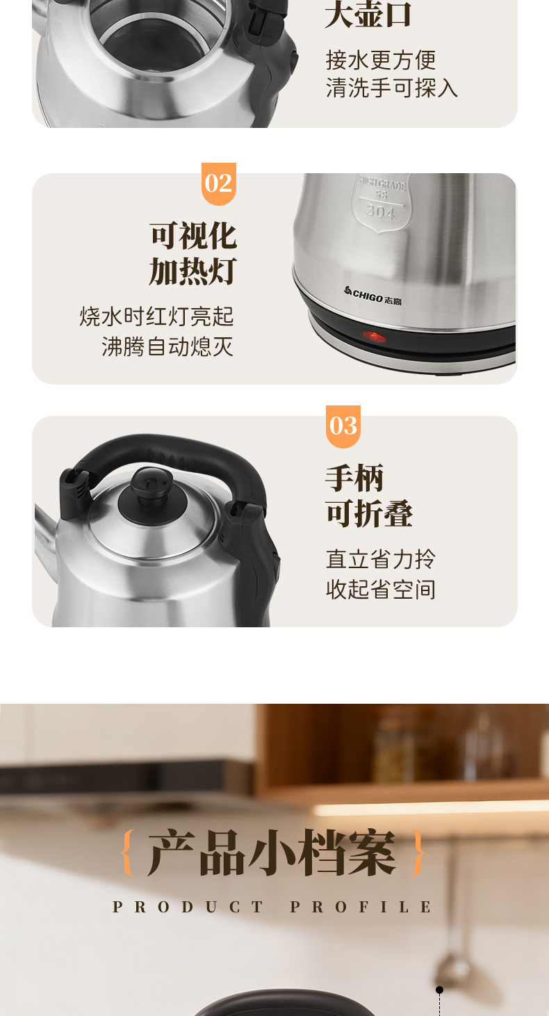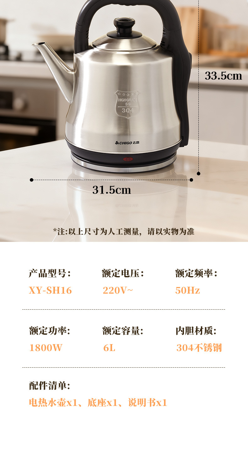 Zhigao hervidor eléctrico 304 hervidor de acero inoxidable 2025 nuevo tipo de hervidor doméstico de gran capacidad apagado automático