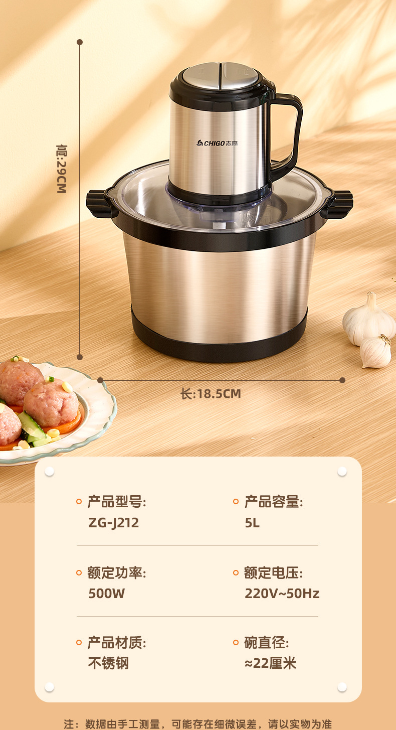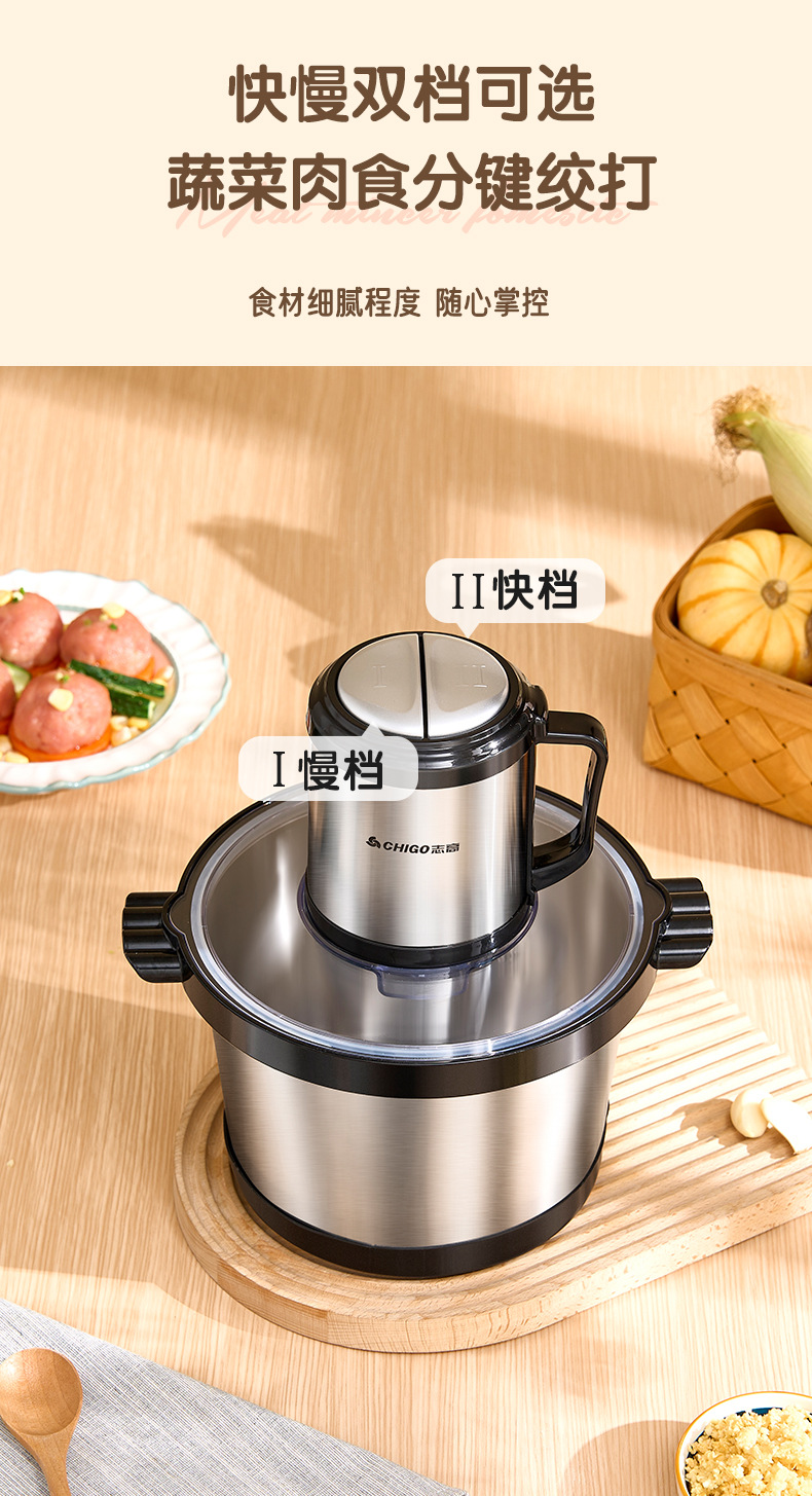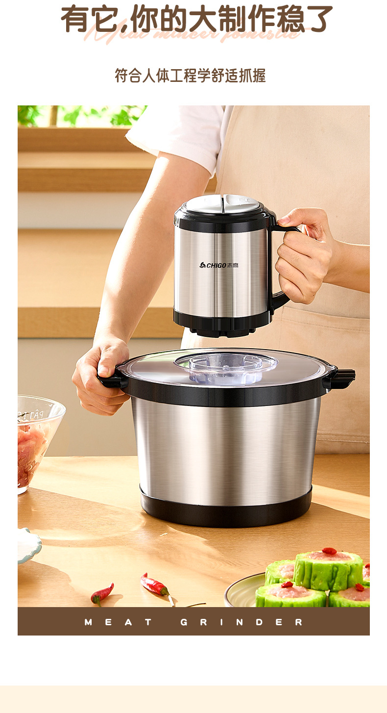 Picadora de carne Chigo de 5L de gran capacidad, comercial, multifuncional, eléctrica de alta potencia, de acero inoxidable para picar carne, moler chile, triturar ajo y verduras