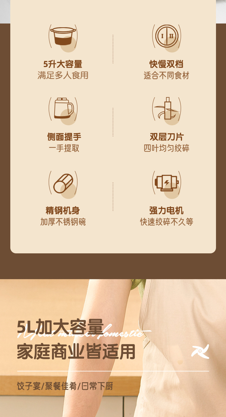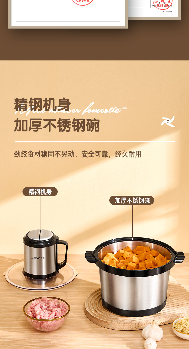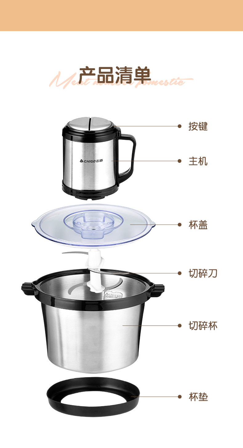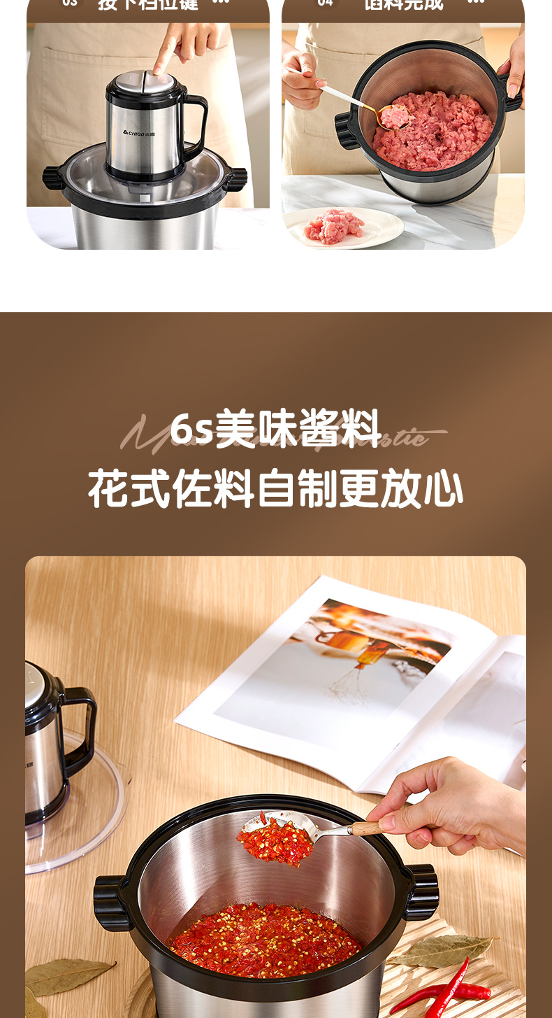 Picadora de carne Chigo de 5L de gran capacidad, comercial, multifuncional, eléctrica de alta potencia, de acero inoxidable para picar carne, moler chile, triturar ajo y verduras