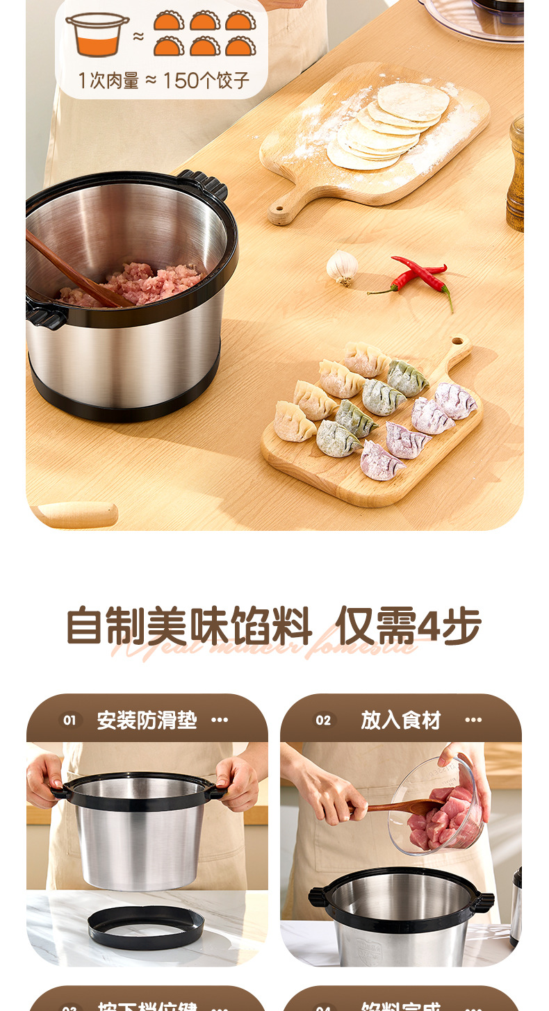 | Colores | Tazón de acero de 4 litros de capacidad (un par de cuchillas),Bol de acero de gran capacidad de 5L (un juego de cuchillas),Bol de acero de gran capacidad de 5L (dos cuchillas) |