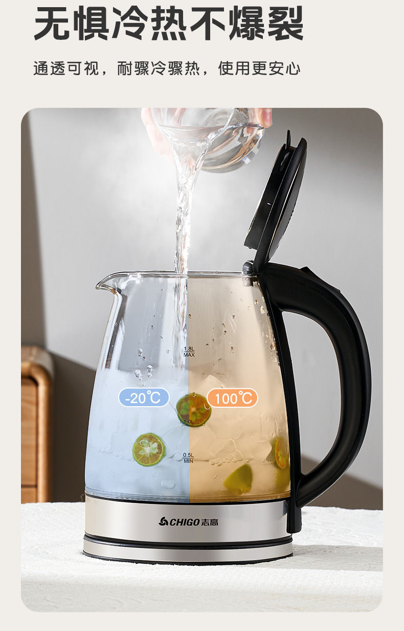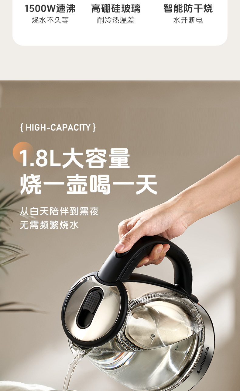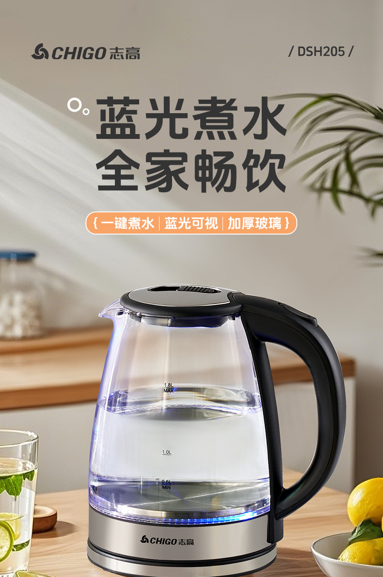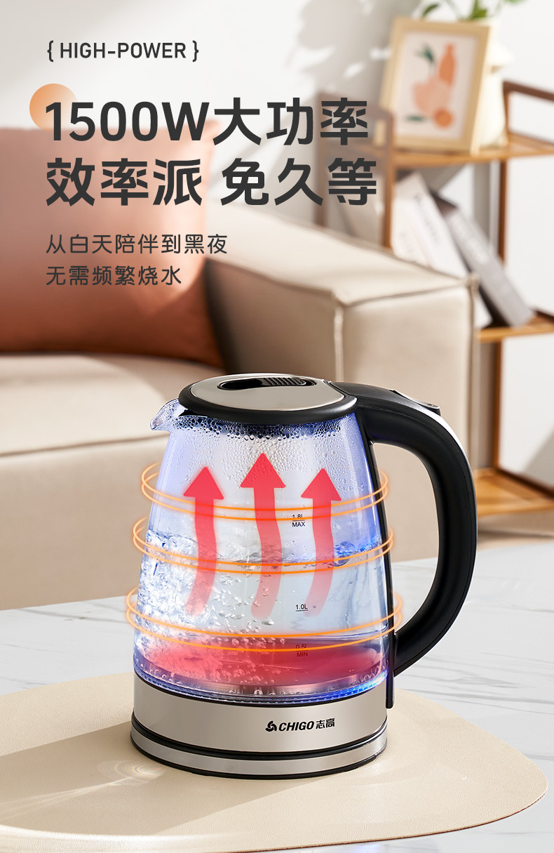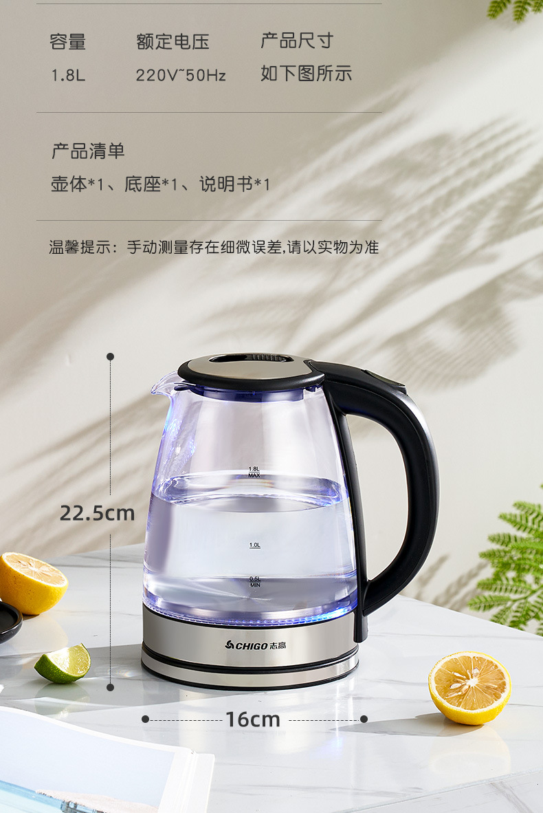 Hervidor de vidrio grueso, hervidor de agua de calentamiento eléctrico multifuncional, hervidor de té pequeño, tetera doméstica al por mayor