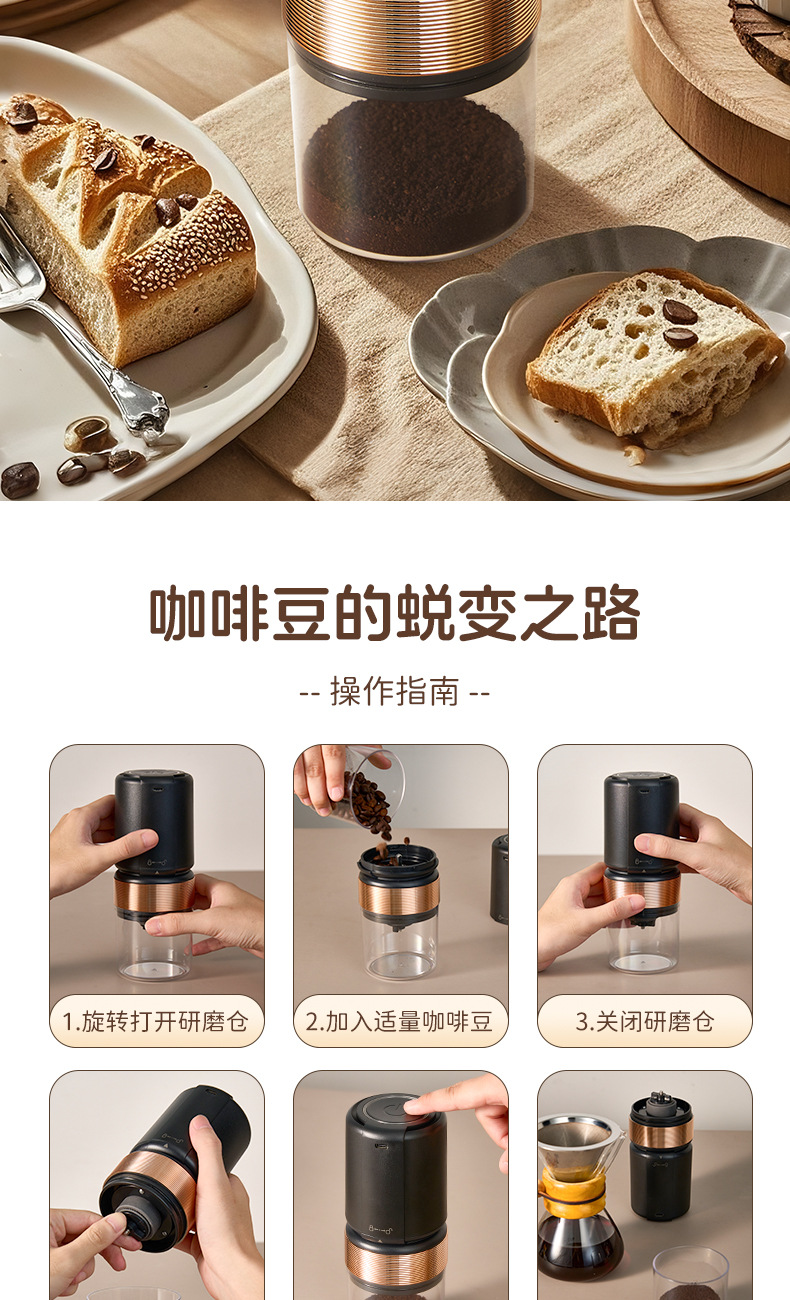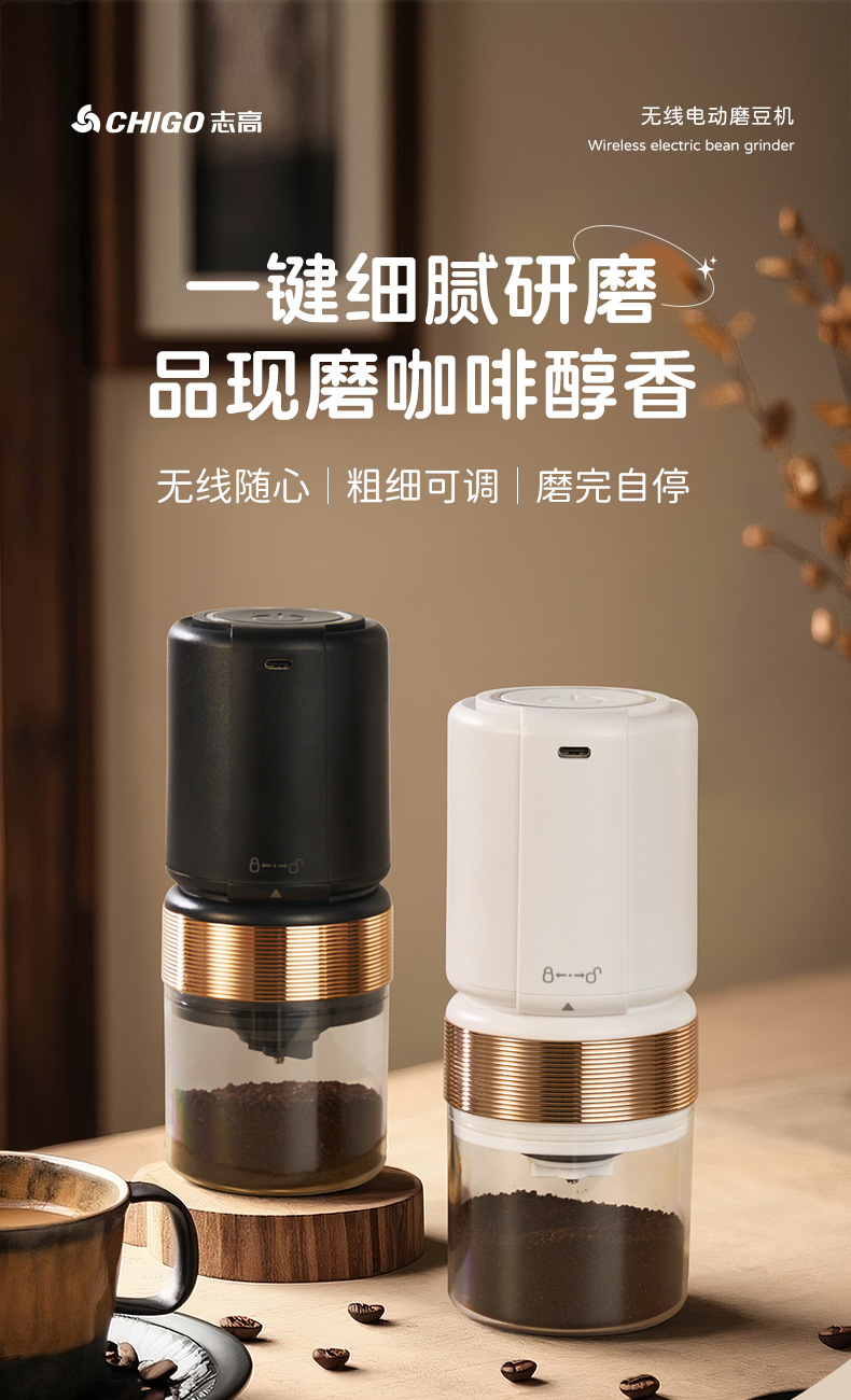 Chigao molino de granos eléctrico doméstico molino de granos de café pequeño molino de granos de café automático portátil molino de ajuste de grosor