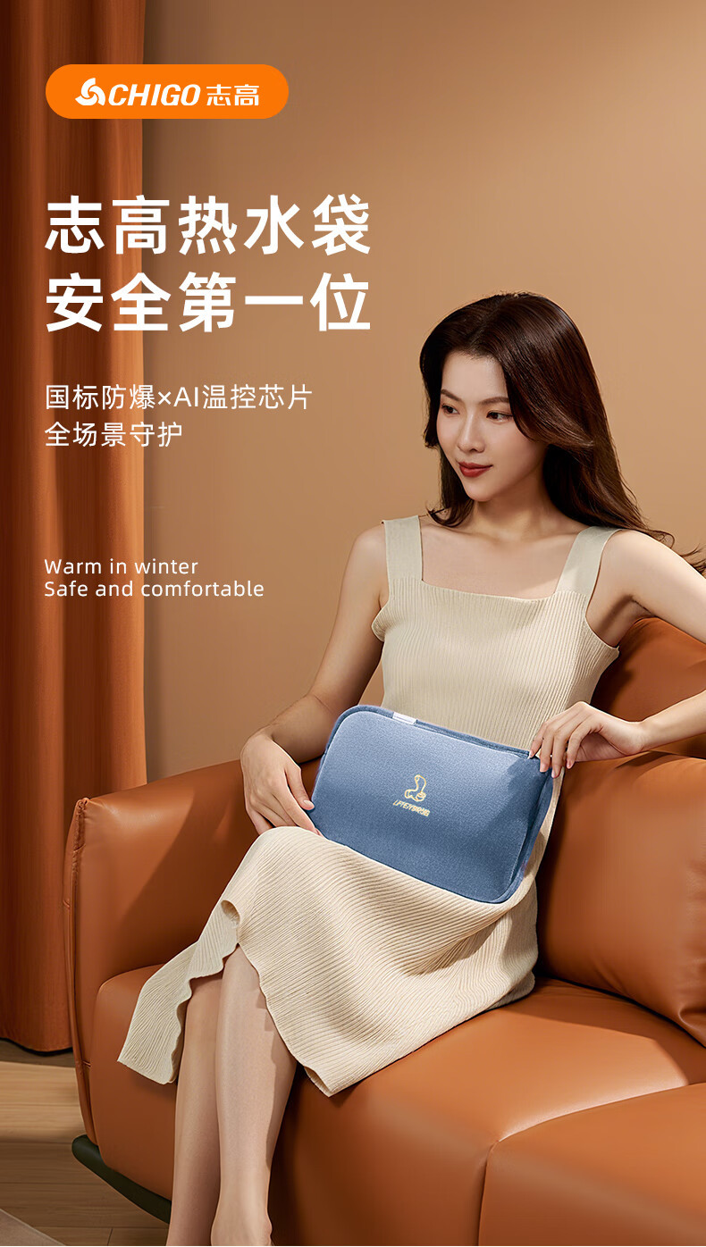 Zhigao bolsa de agua caliente, bolsa de agua caliente recargable, bolsa de agua caliente a prueba de explosiones, bolsa de calentamiento eléctrico, bolsa de calentamiento eléctrico de peluche gruesa.