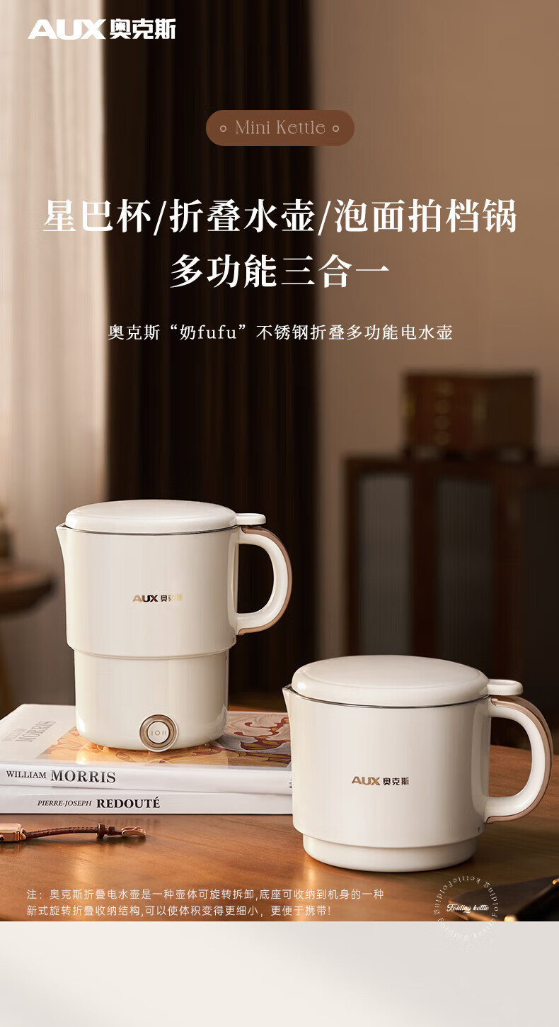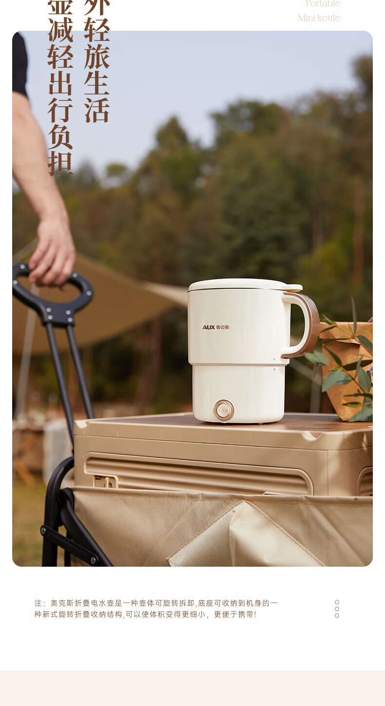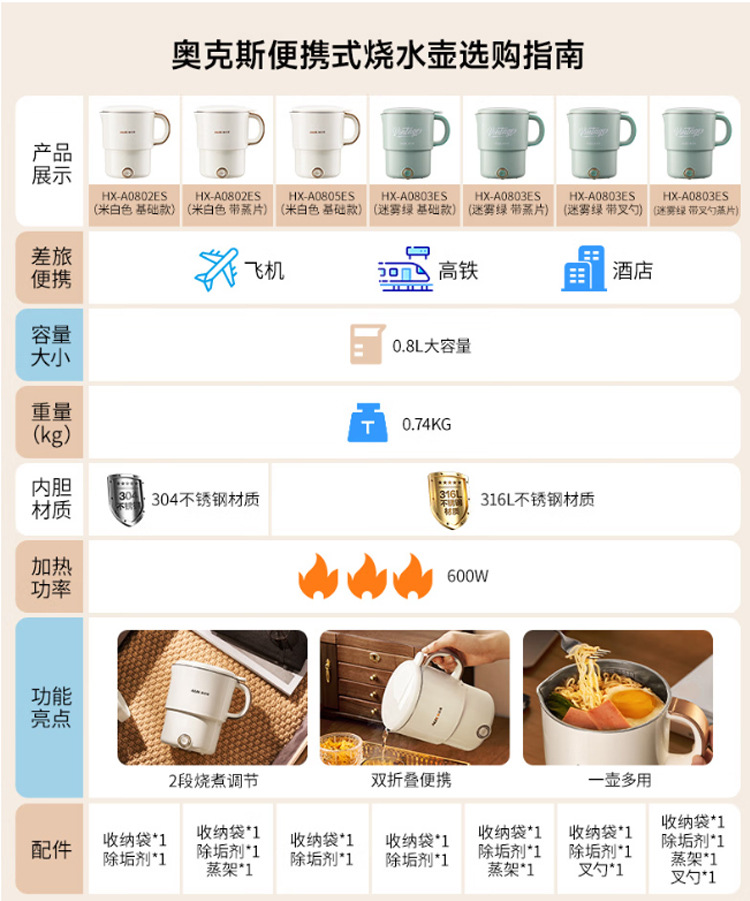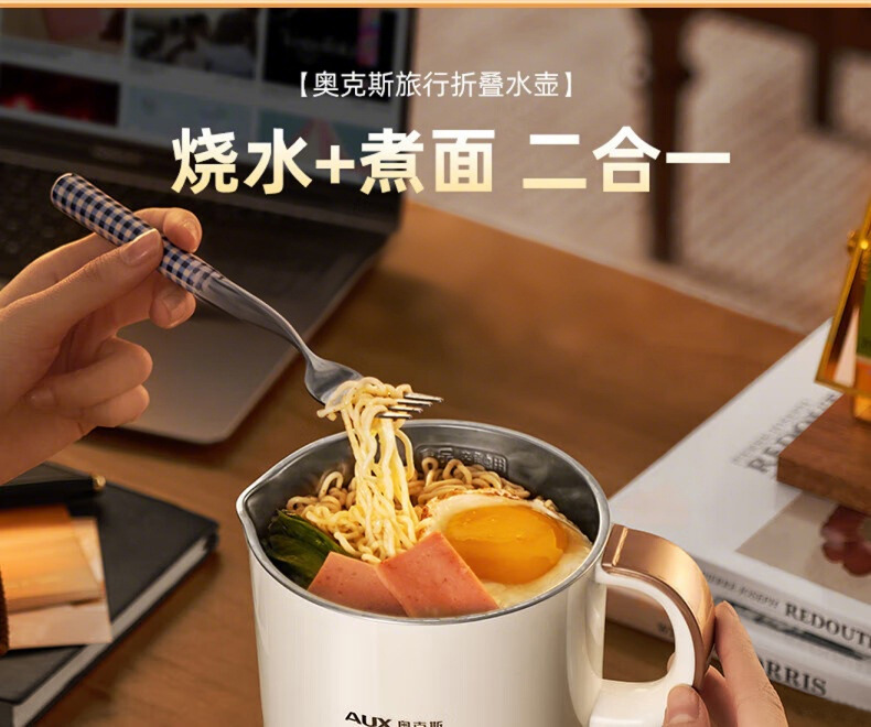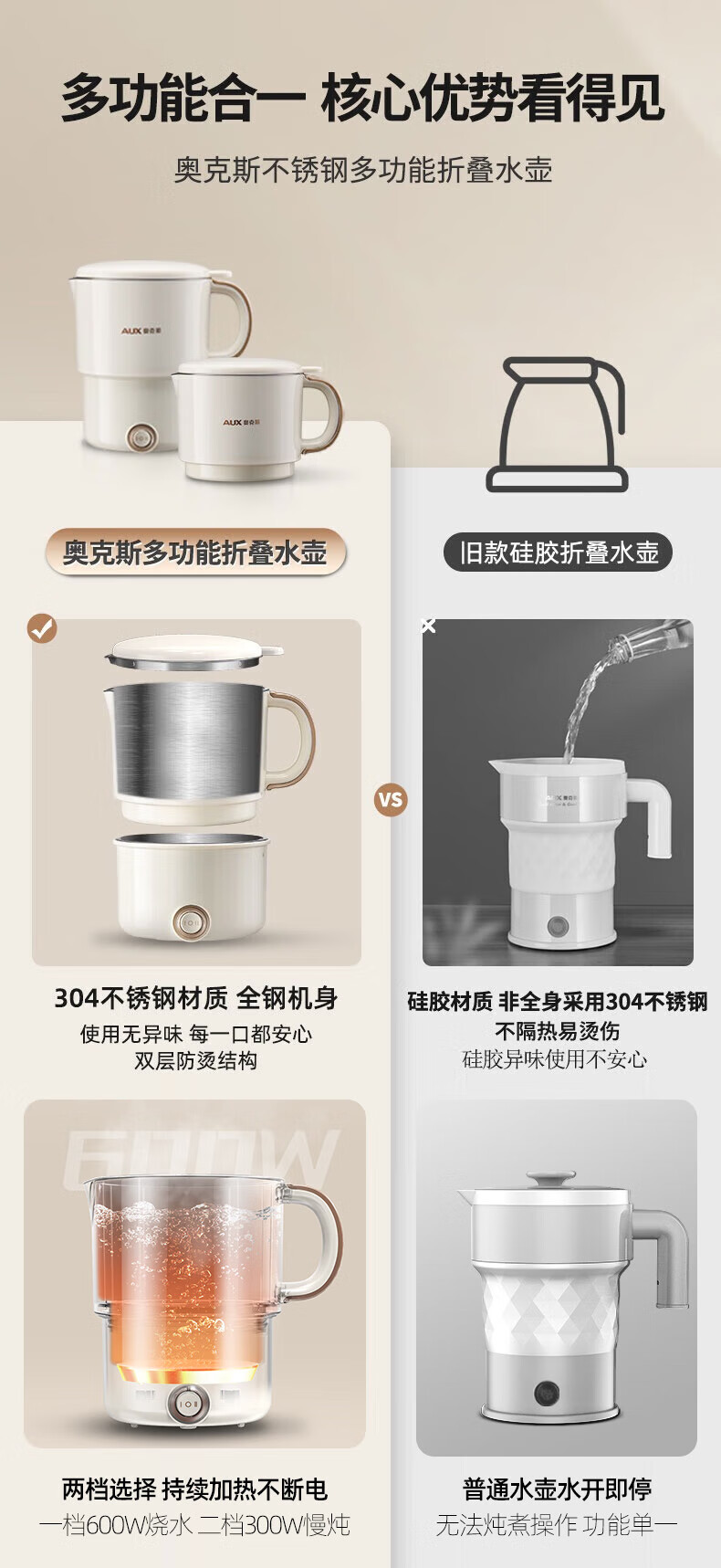 OX todo acero hervidor plegable viaje de negocios hervidor portátil de acero inoxidable taza de agua eléctrica mini hogar
