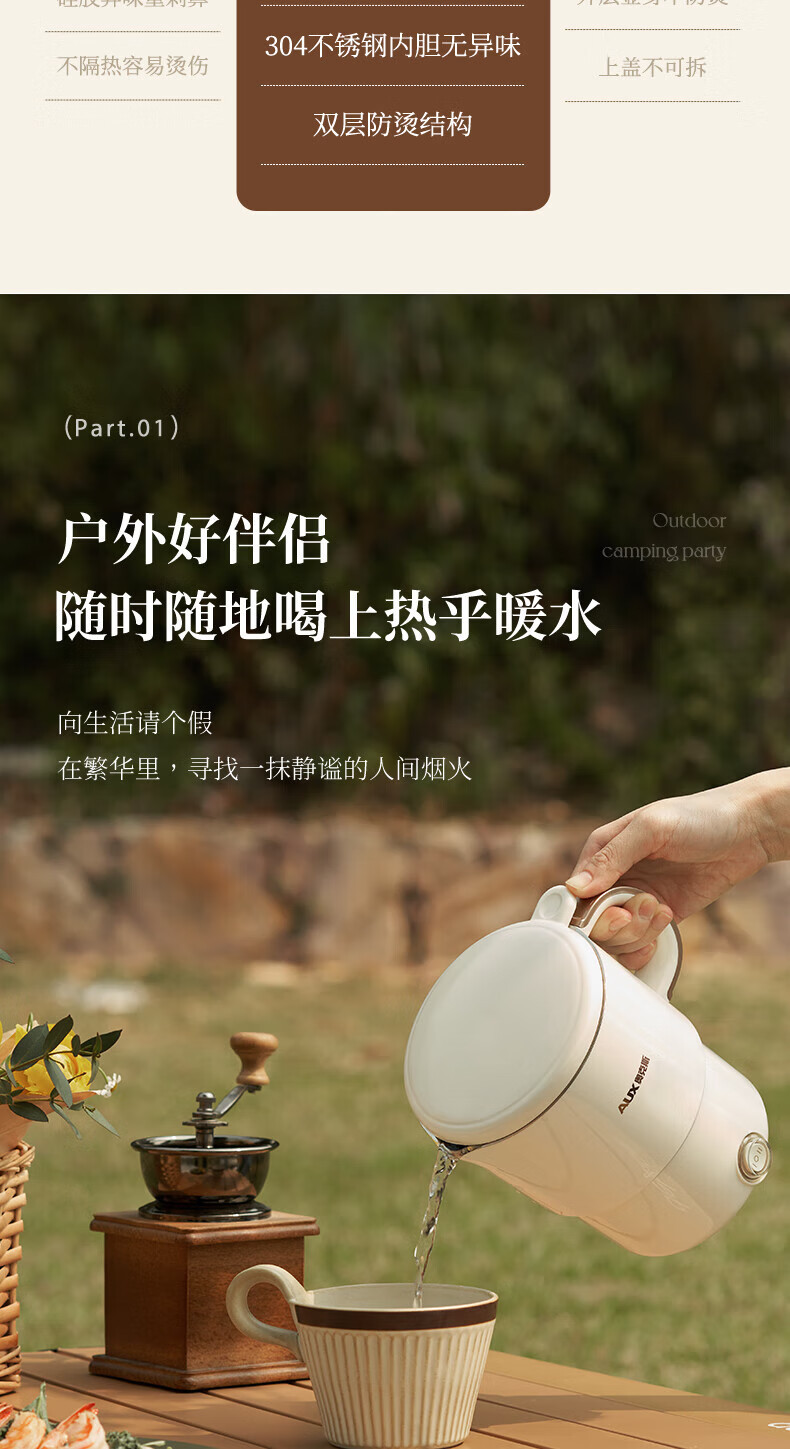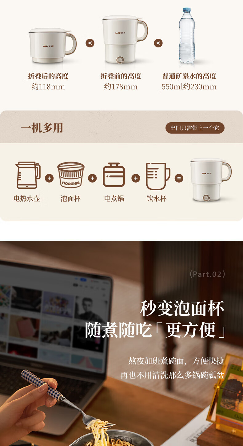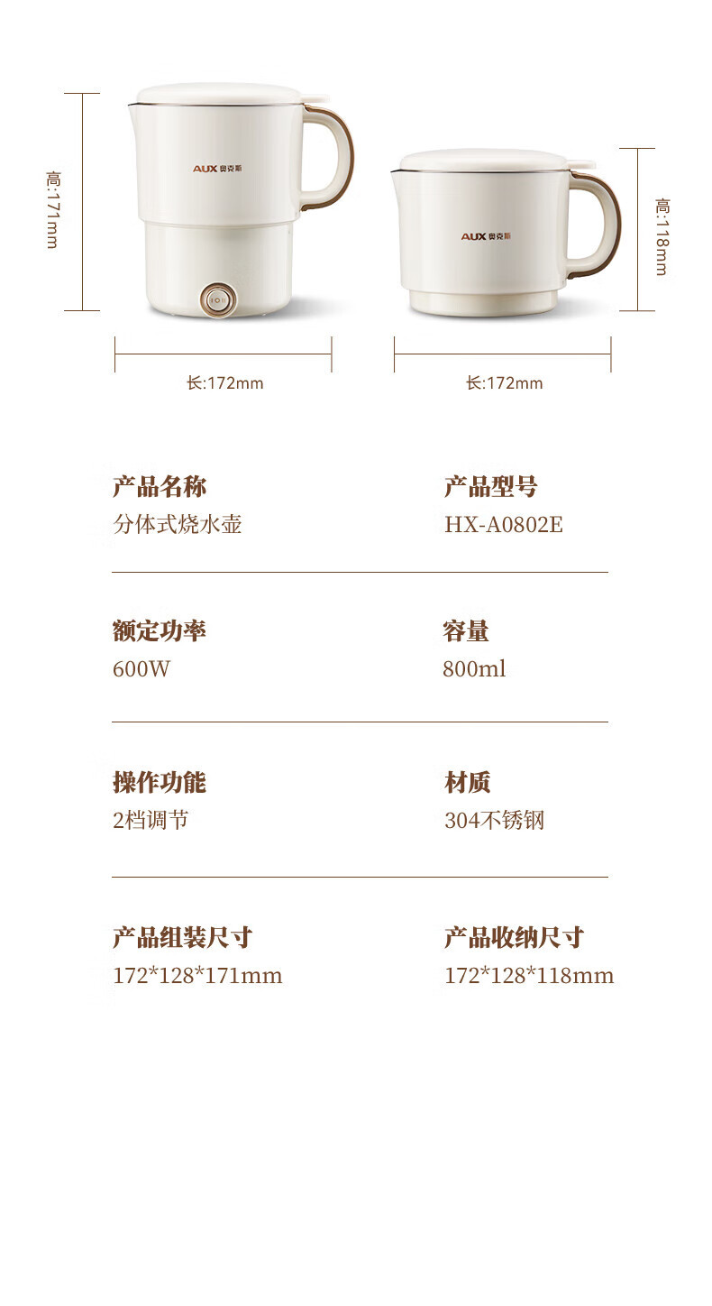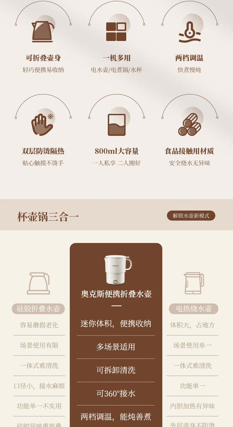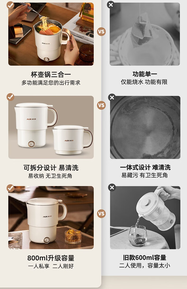 OX todo acero hervidor plegable viaje de negocios hervidor portátil de acero inoxidable taza de agua eléctrica mini hogar