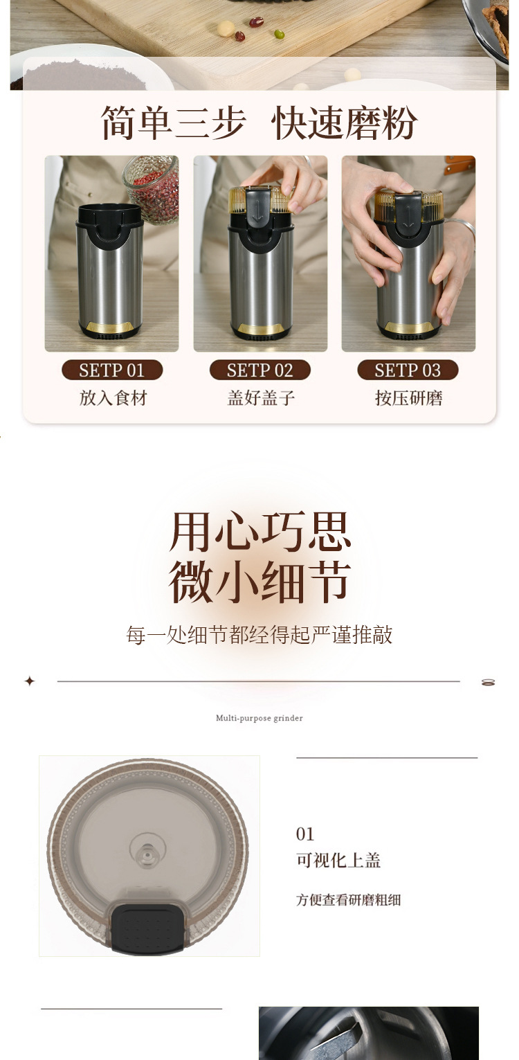 Molinillo de granos de café multifuncional, máquina de café eléctrica, molinillo portátil, molino doméstico, prensa automática de polvo