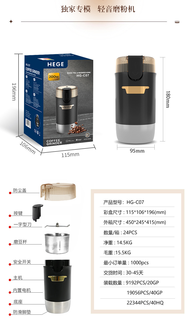 Comercio exterior al por mayor granos de café molino automático molino pequeño eléctrico portátil granos triturador