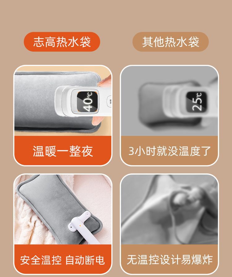 Zhigao bolsa de agua caliente, bolsa de agua caliente recargable, bolsa de agua caliente a prueba de explosiones, bolsa de calentamiento eléctrico, bolsa de calentamiento eléctrico de peluche gruesa.