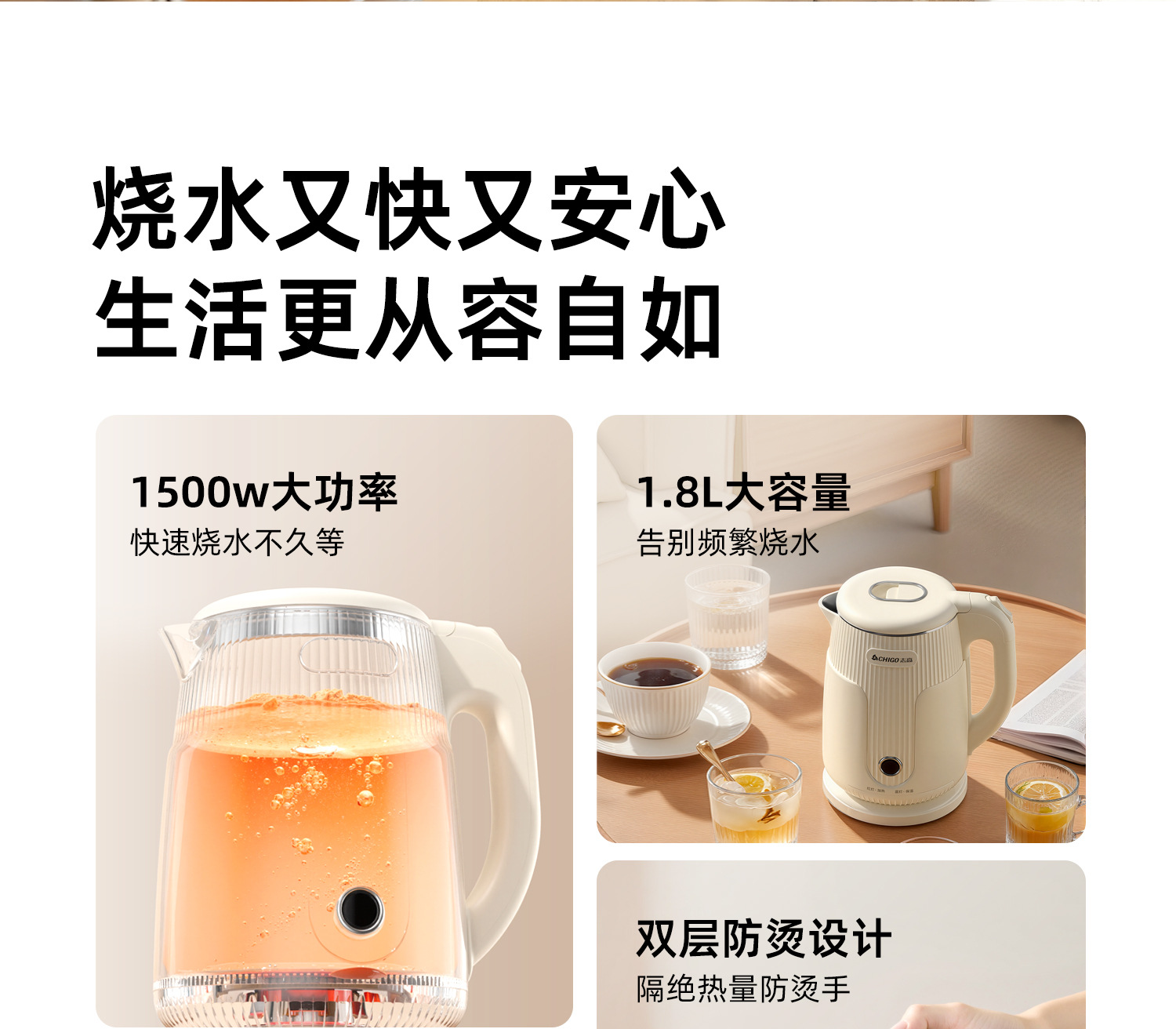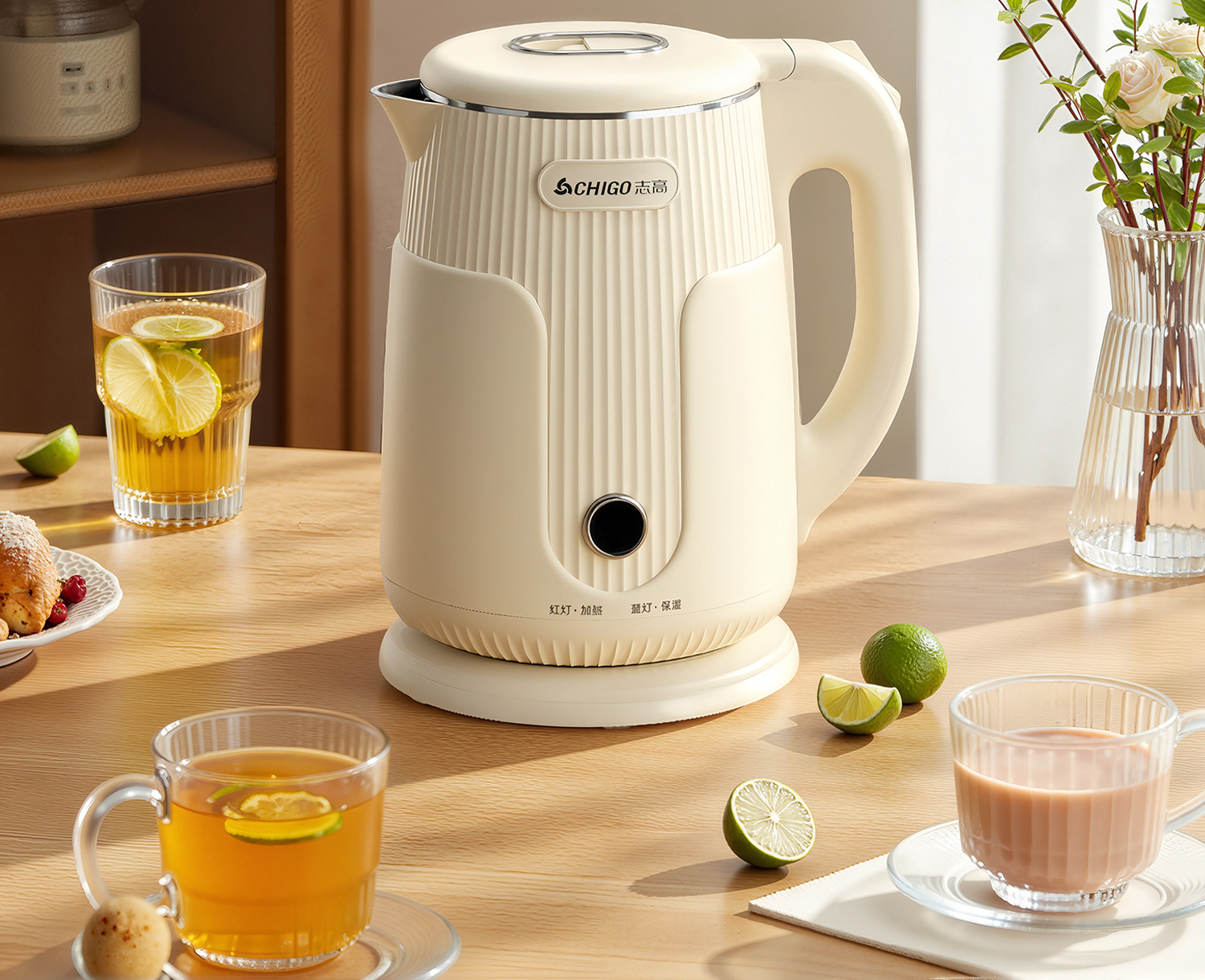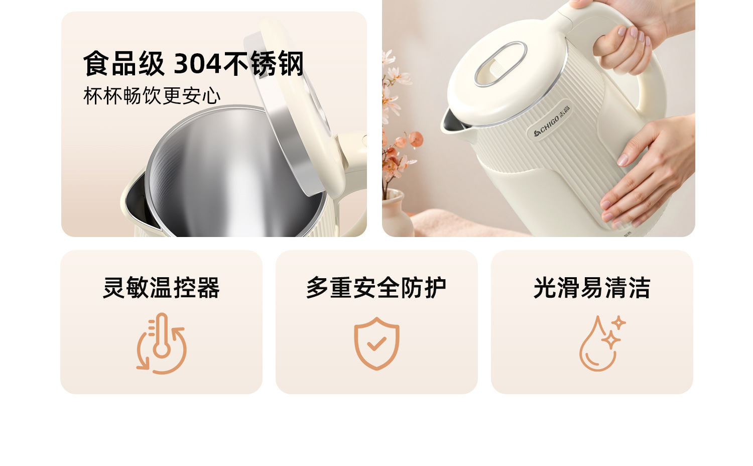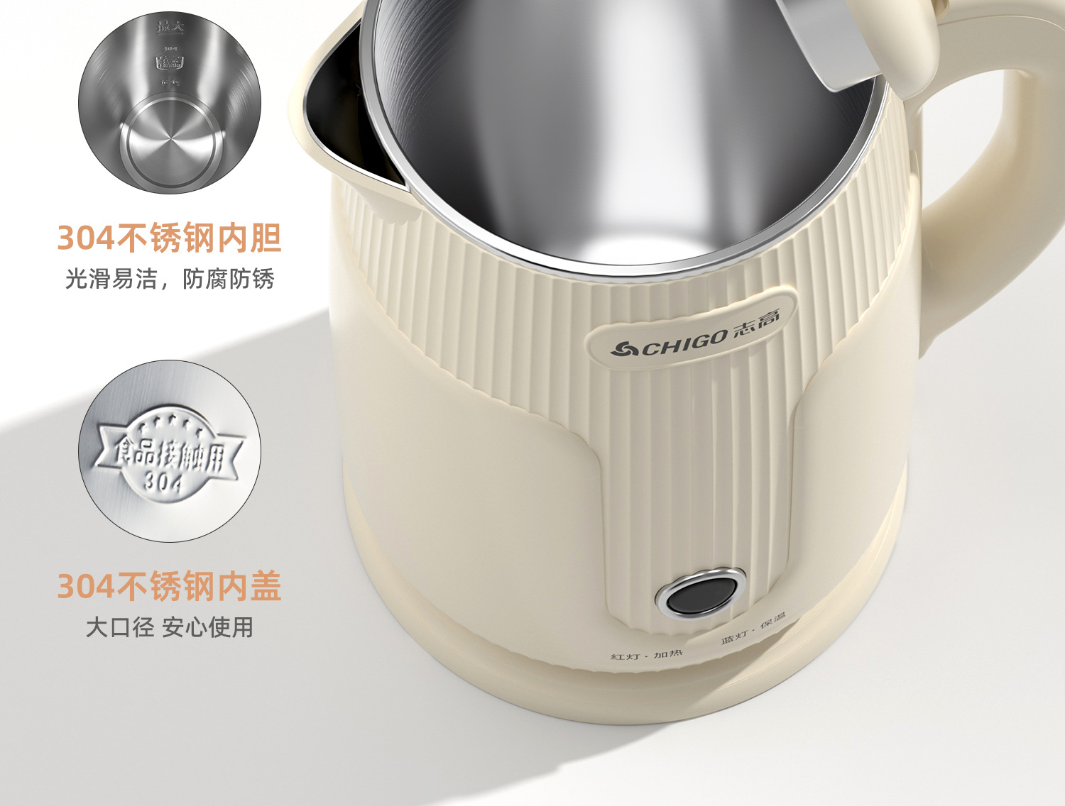 Zhigao hervidor de agua eléctrica hervidor de agua doméstico aislamiento automático apagado de acero inoxidable hervidor de agua caliente de gran capacidad al por mayor