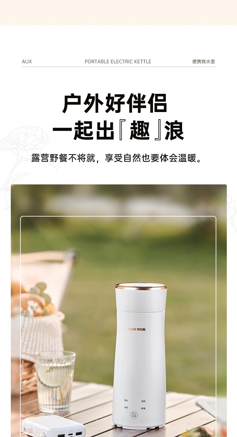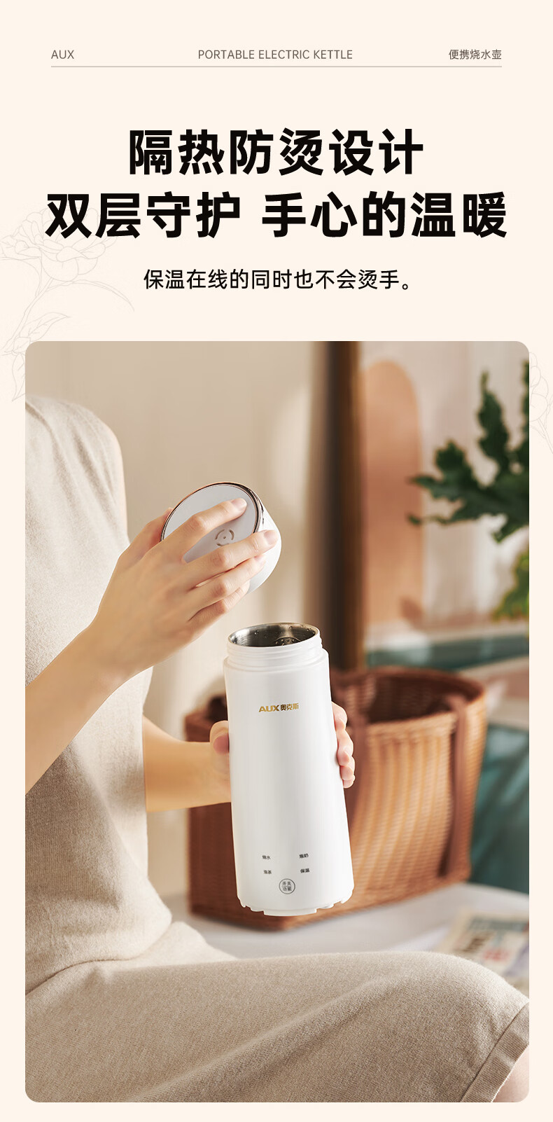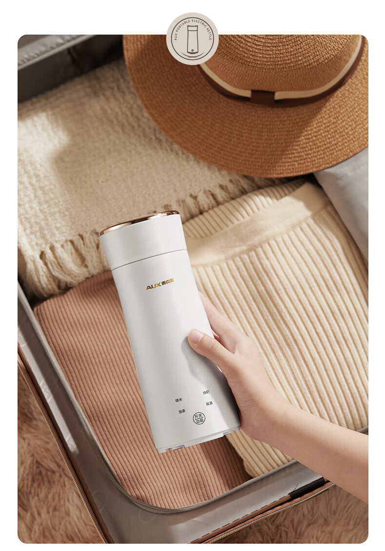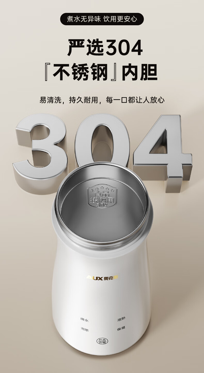Taza de agua eléctrica portátil AUX Taza de agua eléctrica de acero inoxidable 304 Salud de viaje Hervidor eléctrico pequeño