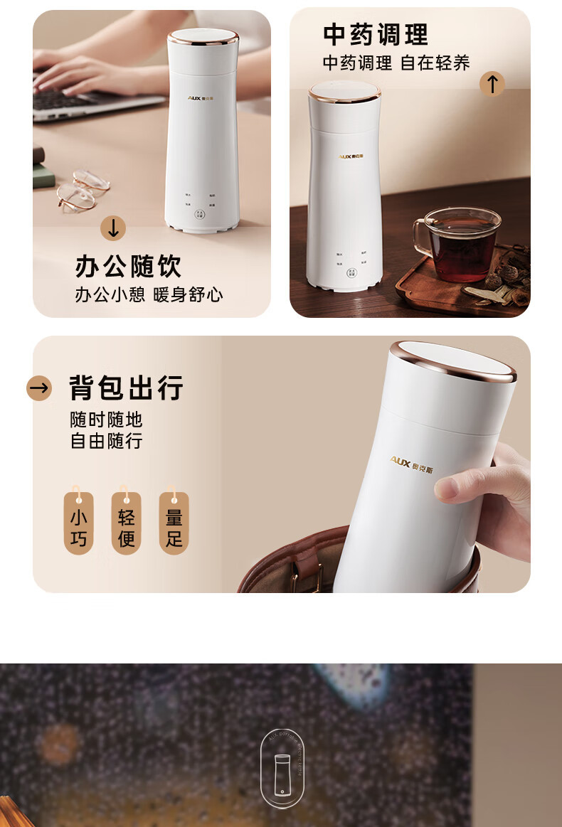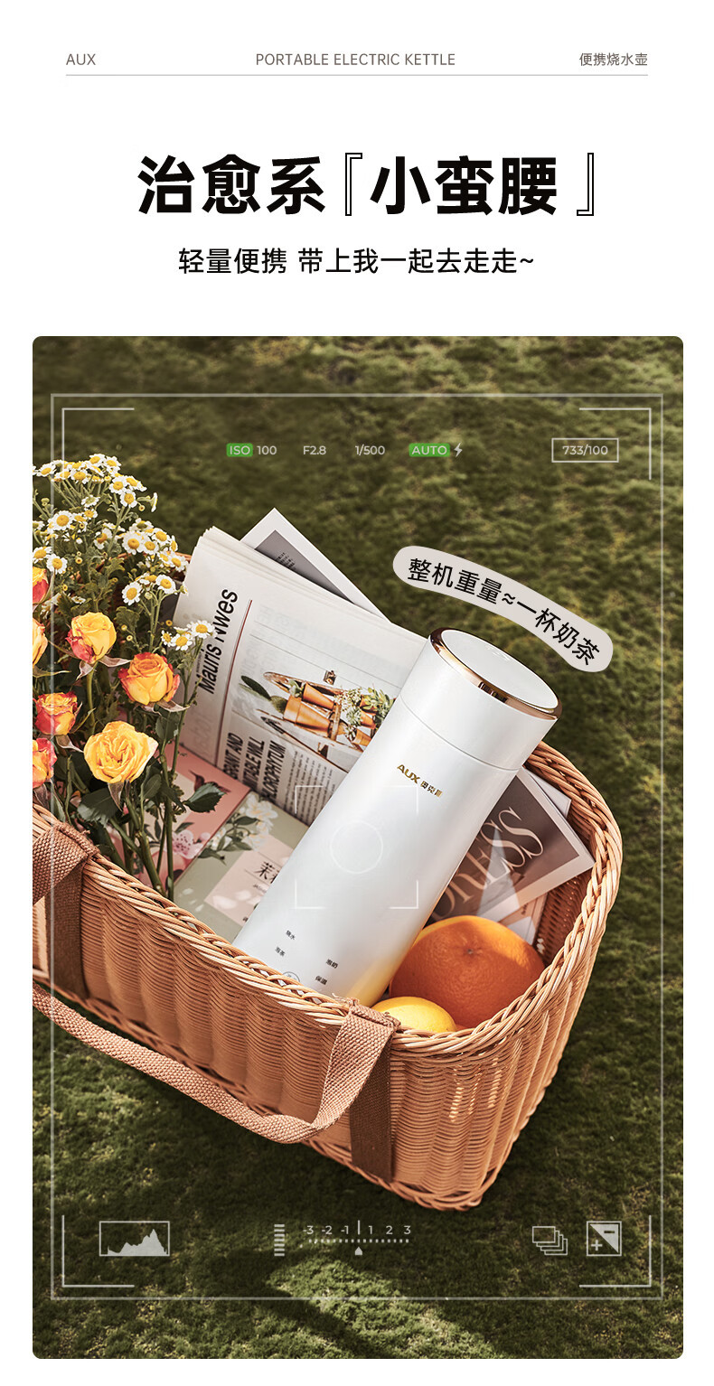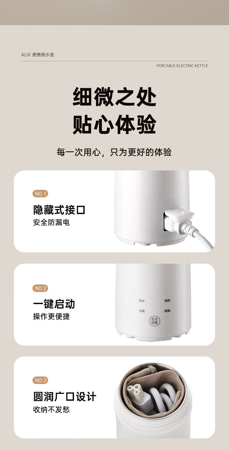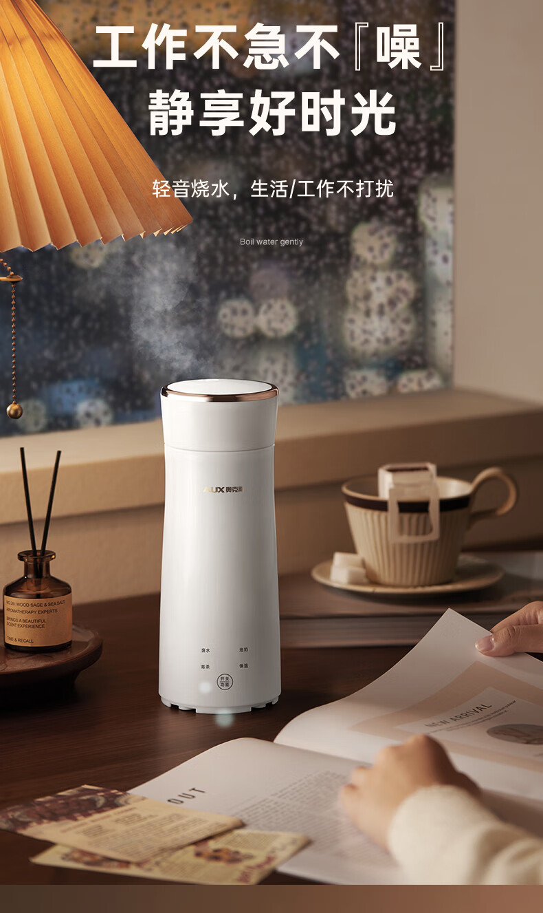 Taza de agua eléctrica portátil AUX Taza de agua eléctrica de acero inoxidable 304 Salud de viaje Hervidor eléctrico pequeño