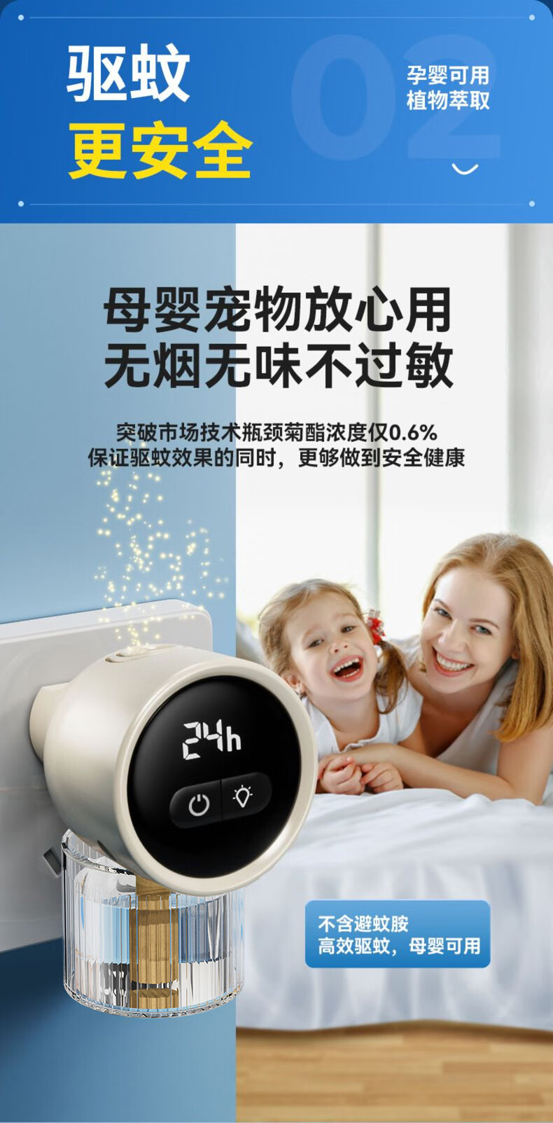 Incendiente de mosquitos de calentamiento eléctrico inodoro para bebés con tiempo fijo, líquido suplementario para bebés anti-mosquitos líquido repelente de mosquitos