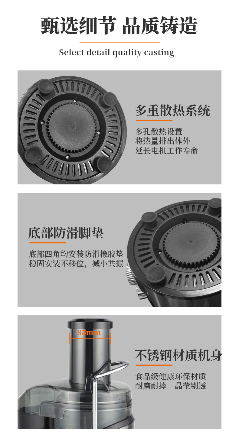 Exprimidor de gran calibre, nuevo, de acero inoxidable, multifuncional, para el hogar, separación de pulpa y jugo, exprimidor de gran calibre para frutas y leche de soja