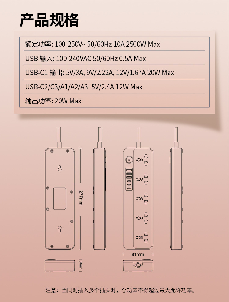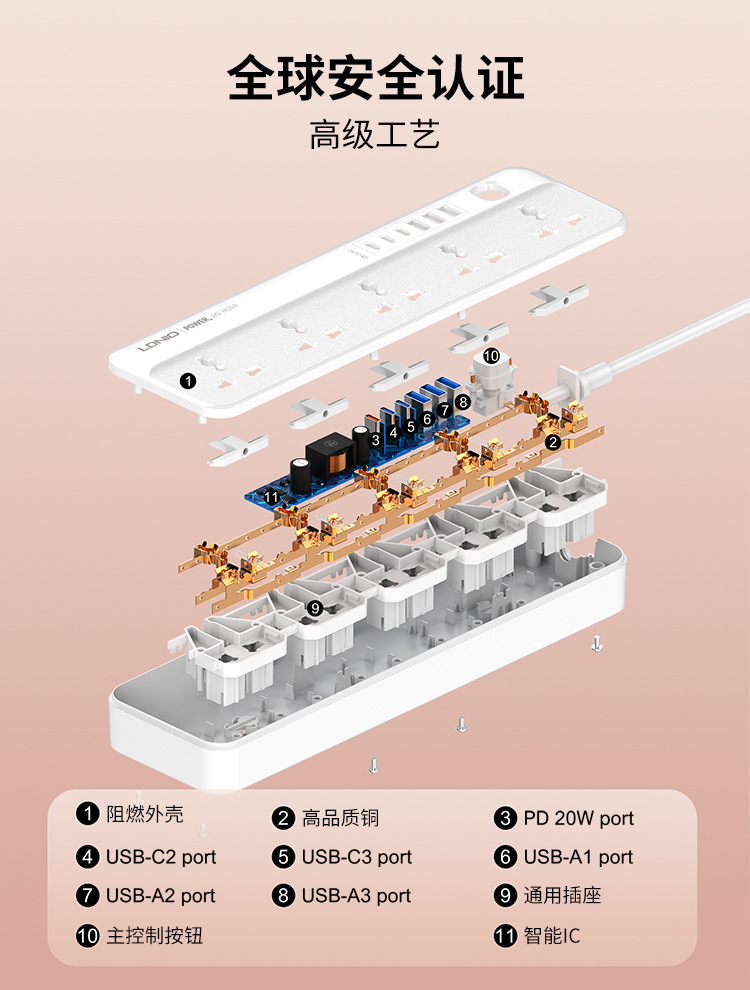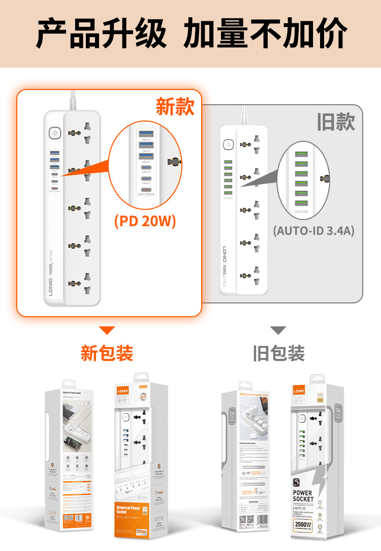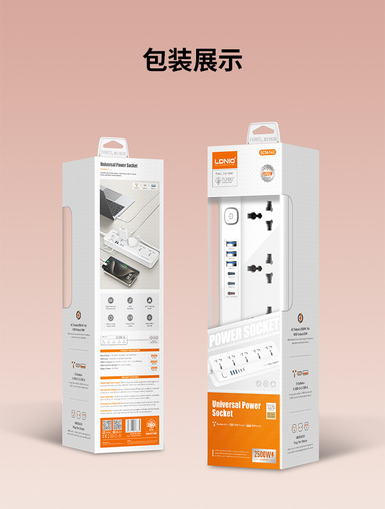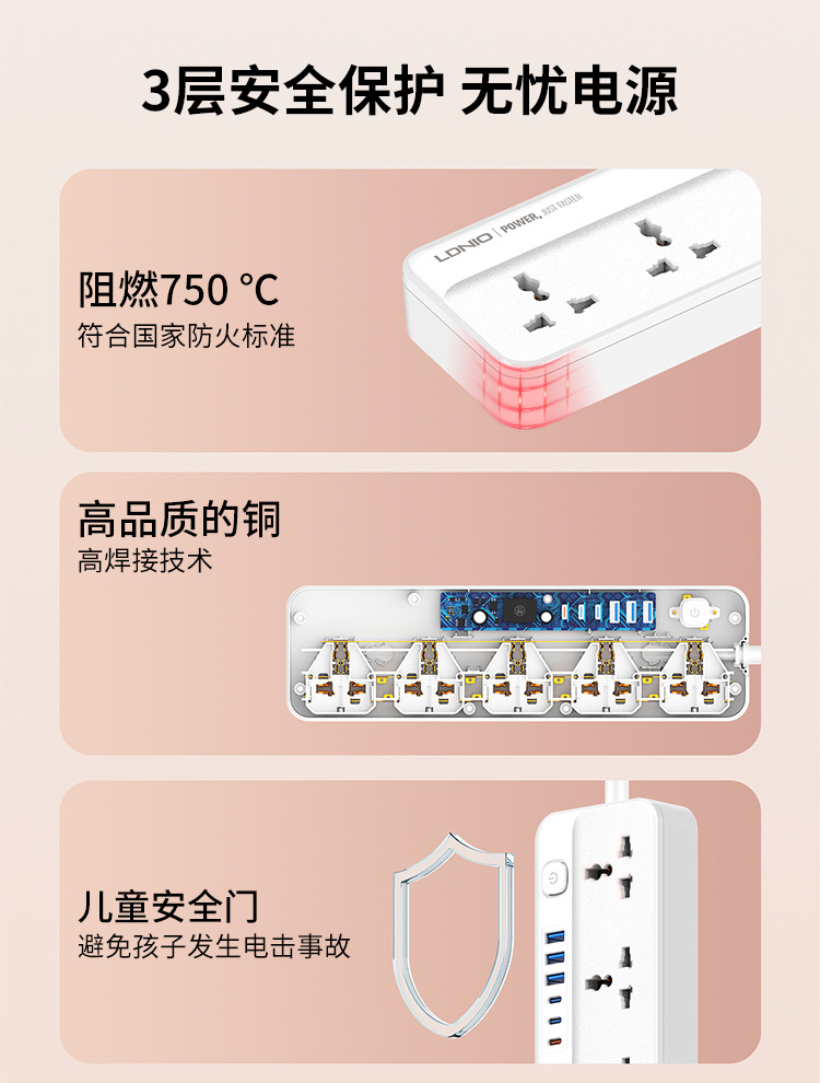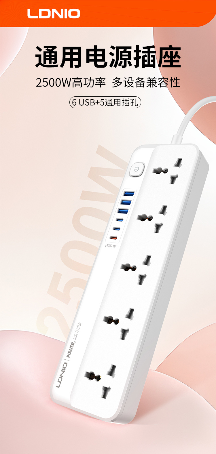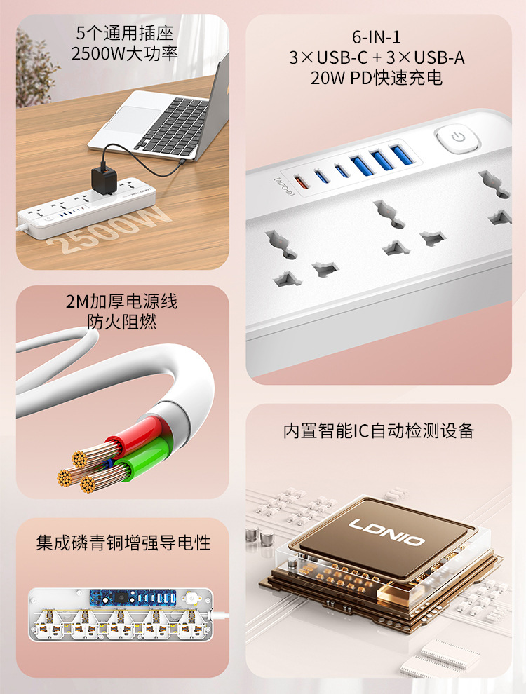 Enchufe de línea estándar europeo de comercio exterior LDNIO, enchufe de alta potencia estándar estadounidense, enchufe de múltiples enchufes universal, enchufe de cable USB