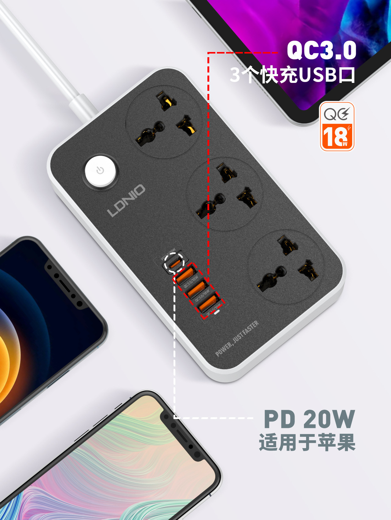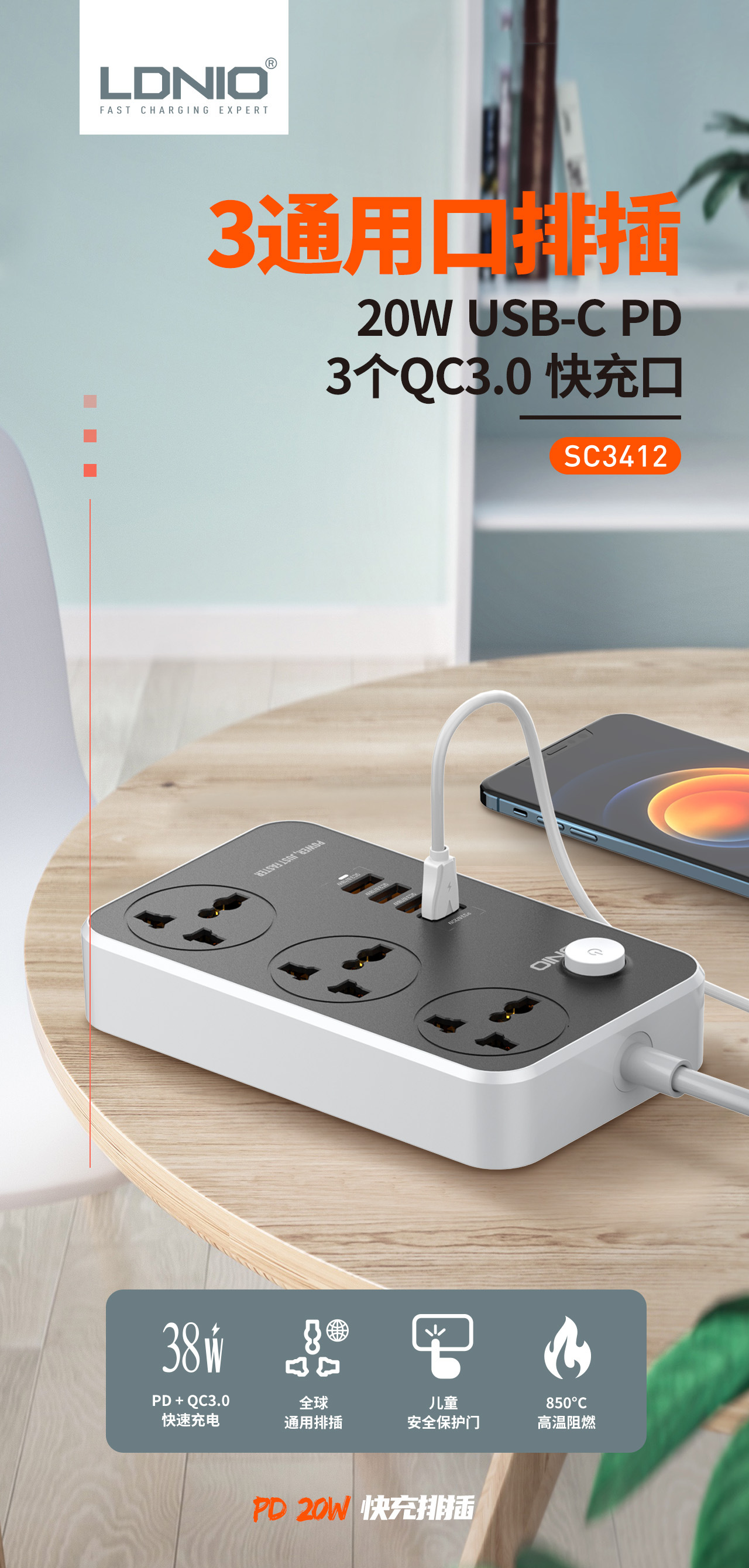 Ldnio transfronterizo PD enchufe de carga rápida estándar europeo Filipinas Japón multi-función Placa de cableado inteligente