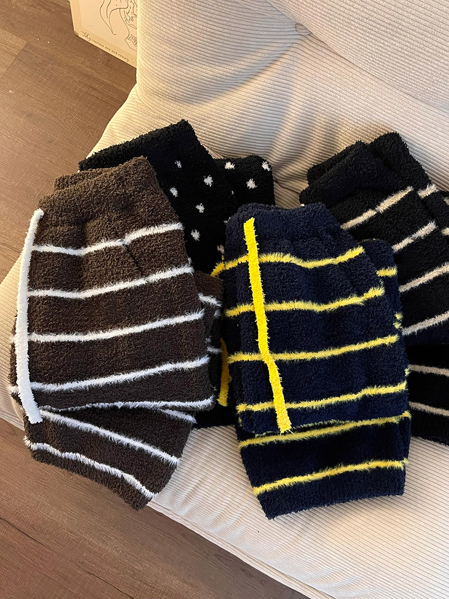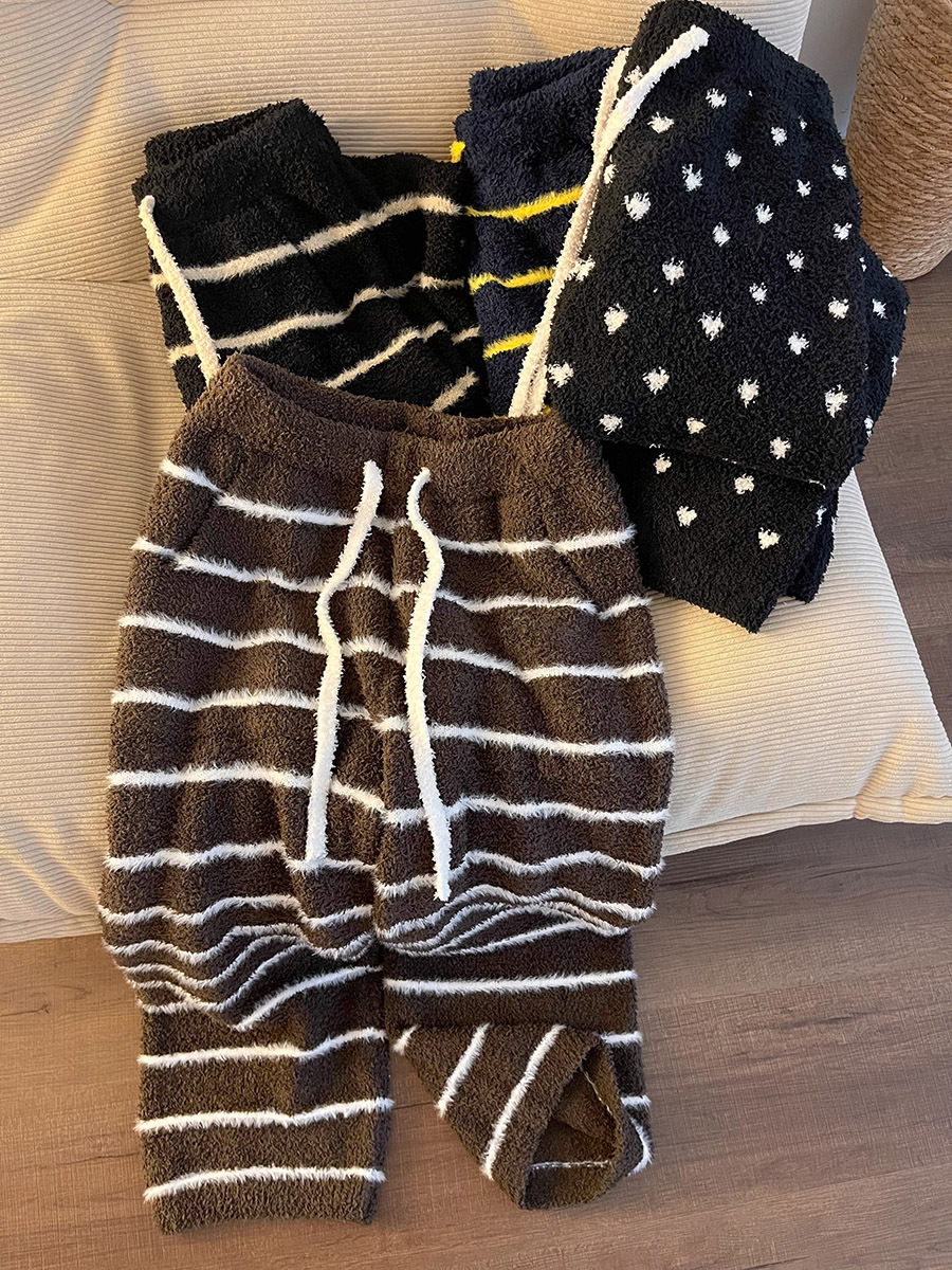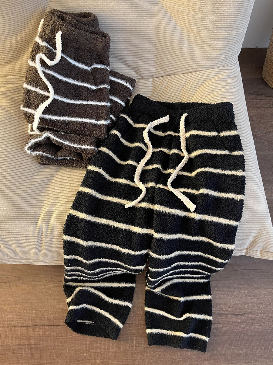Coreana simple estriado viento impresión mitad de pijamas de terciopelo mujeres invierno nuevo engrosado calentamiento de la moda pantalones largos