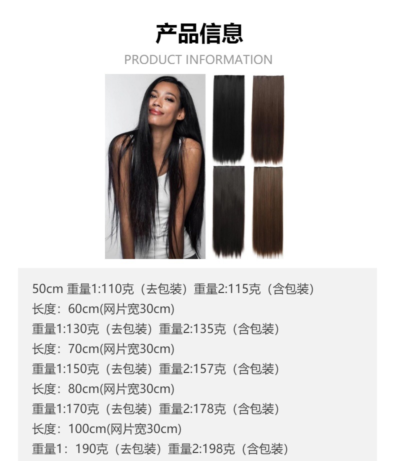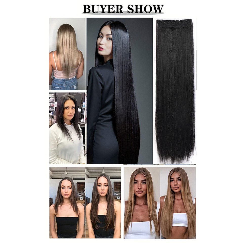 Pelucas europeas y estadounidenses transfronterizas cinco tarjetas extensiones de cabello pelucas de cabello largo recto una pieza de clip extensiones de cabello al por mayor en stock