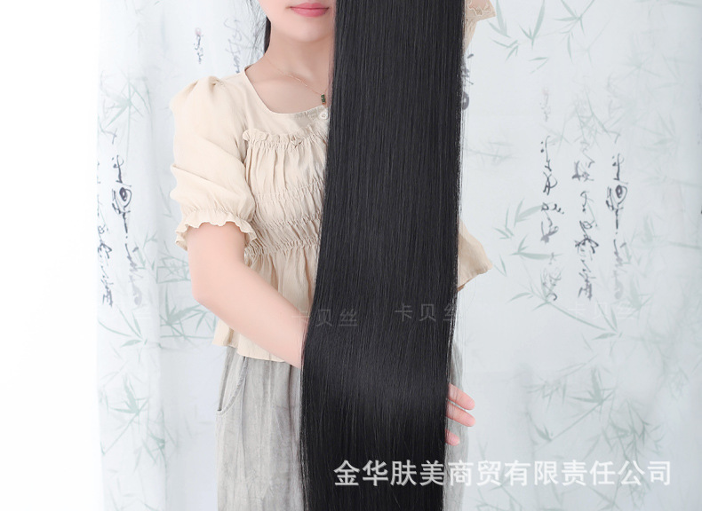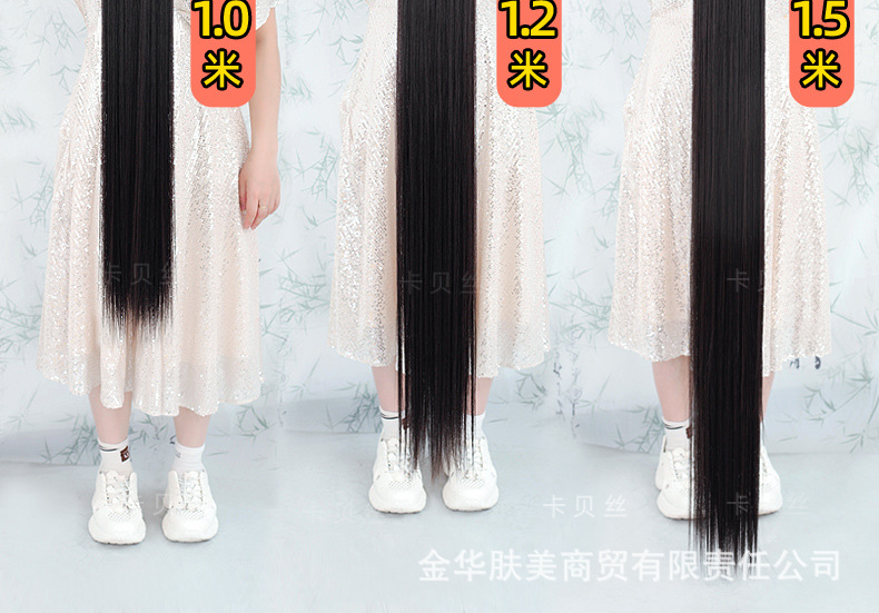 Simulación 1 m 1,2 m 1,5 m peluca negra superlarga película de cabello lacio traje antiguo accesorios de ópera película de extensión de cabello de peluca