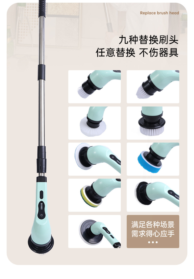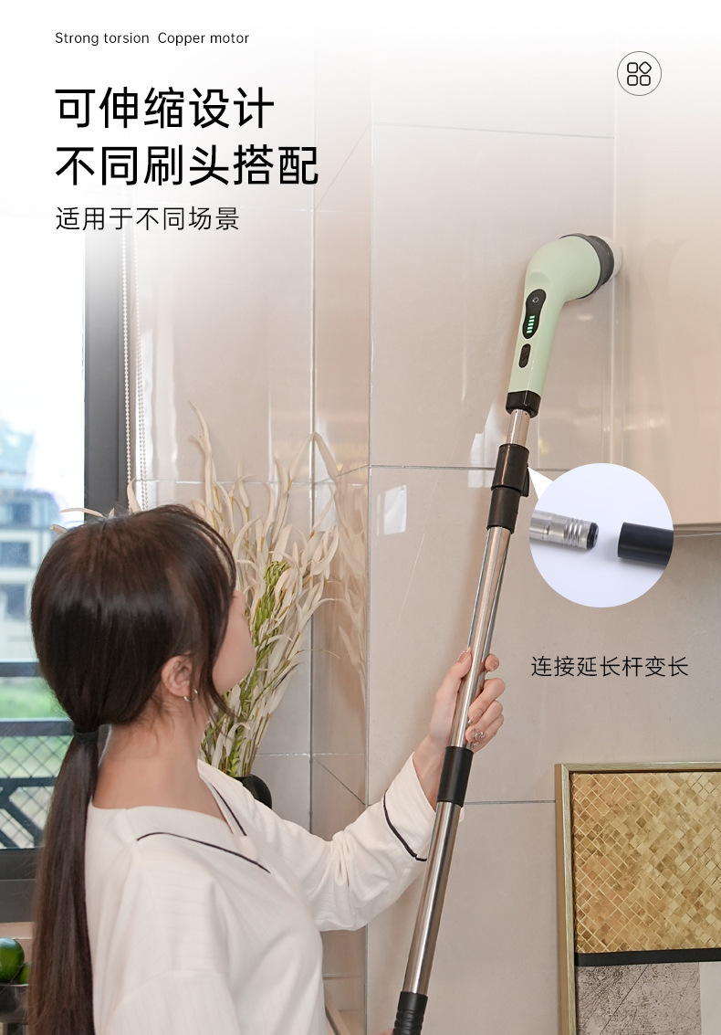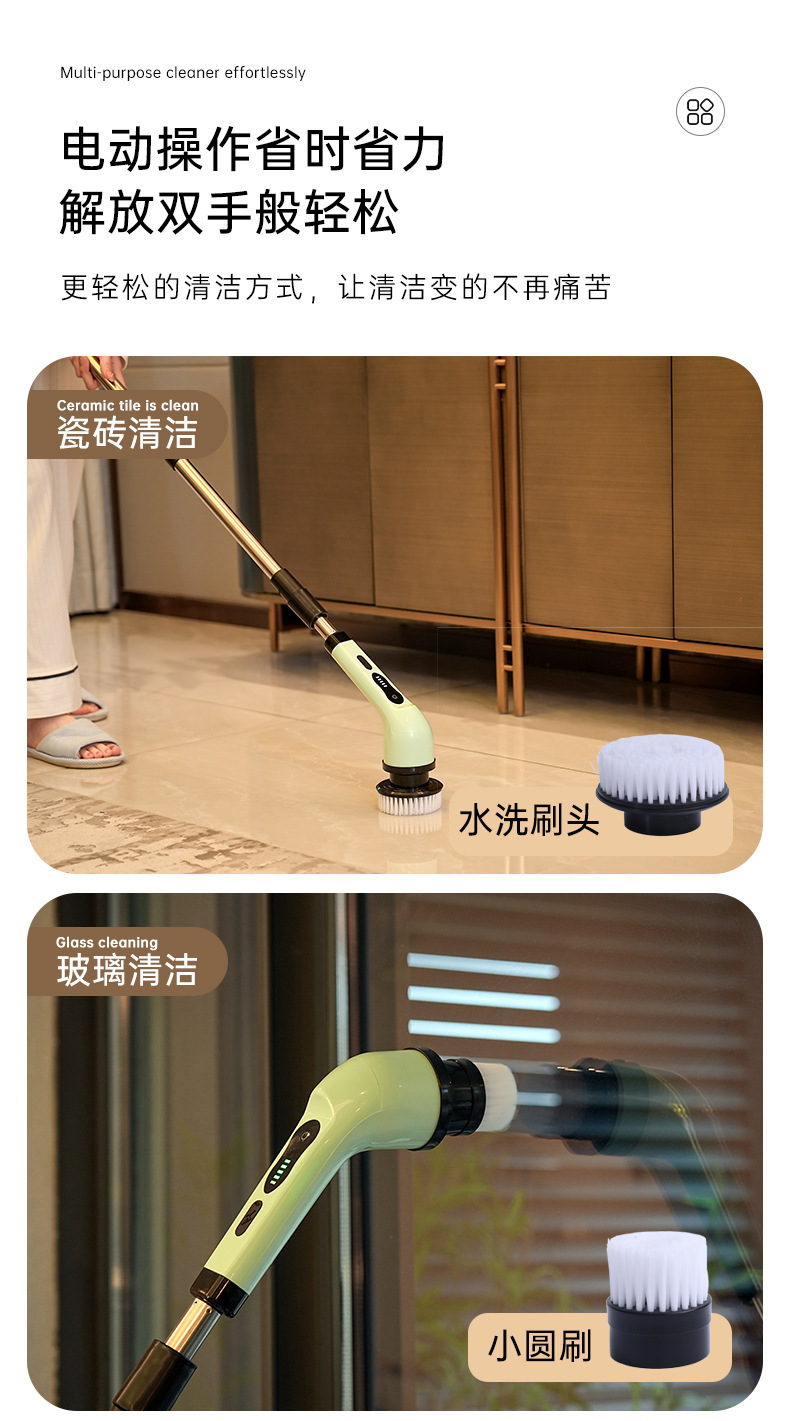 Cepillo de limpieza multifuncional eléctrico transfronterizo para cocina doméstica y baño de vidrio de longitud de cepillo de doble propósito para poder limpiar a mano