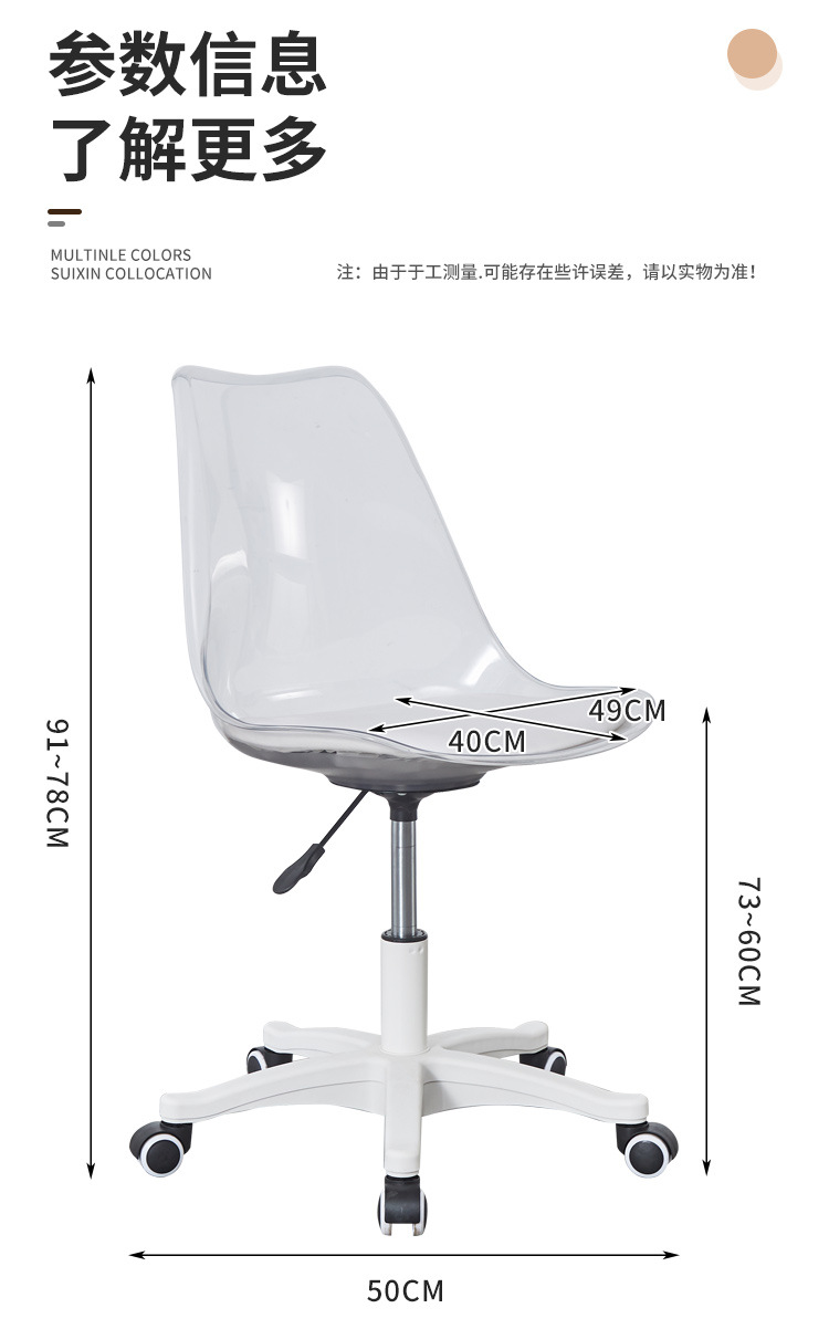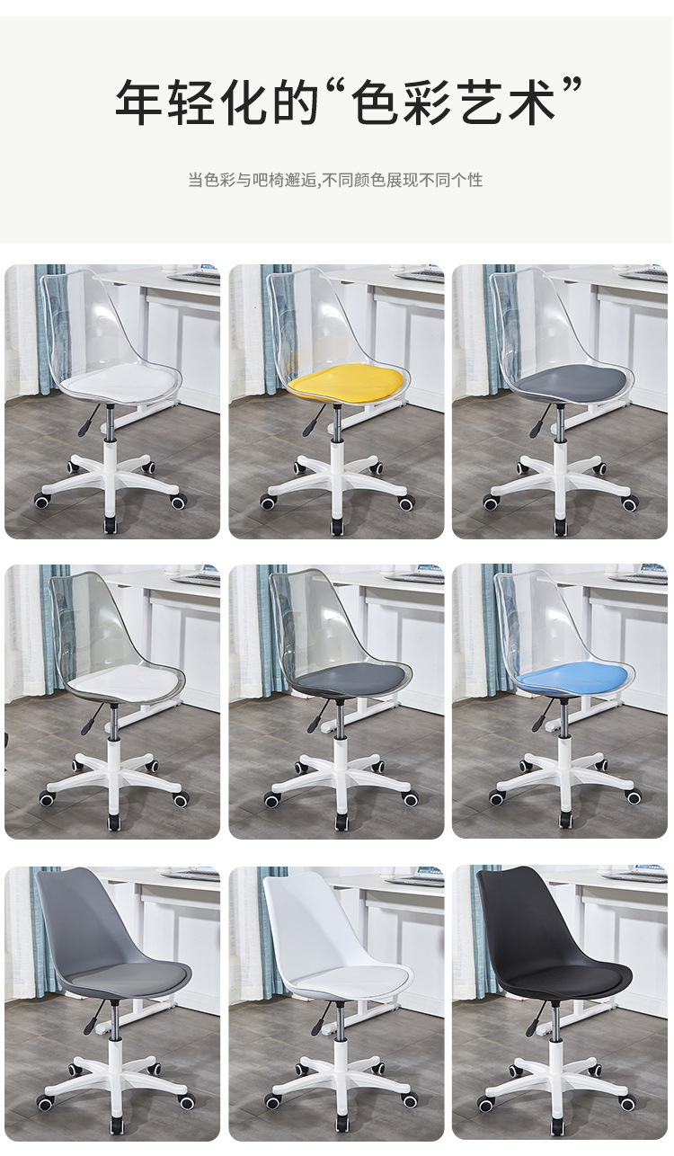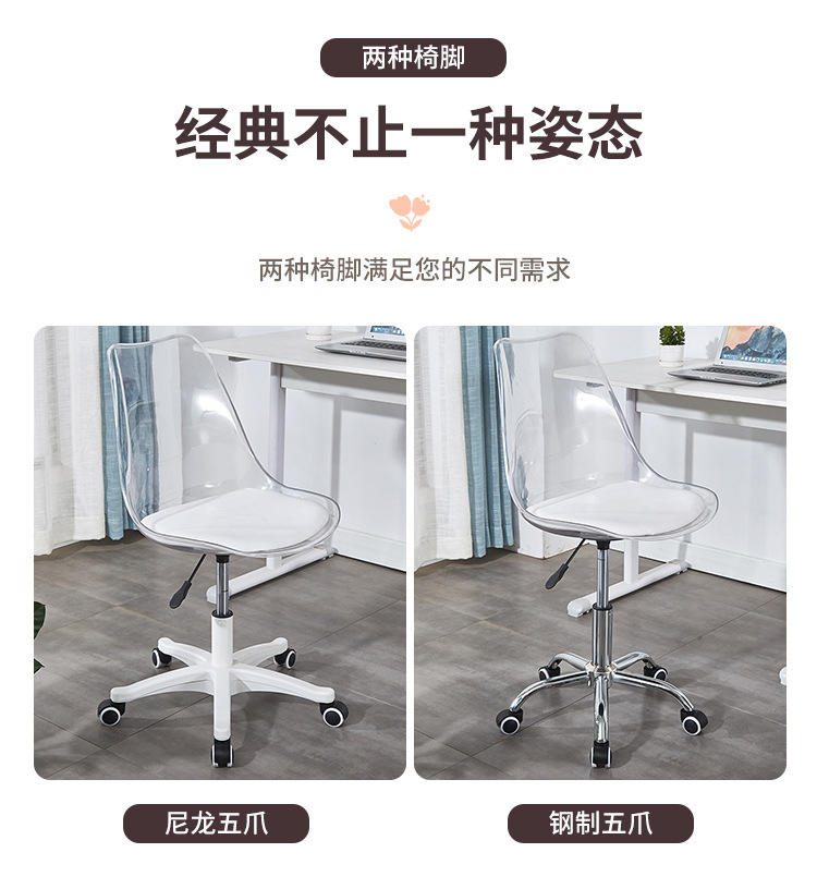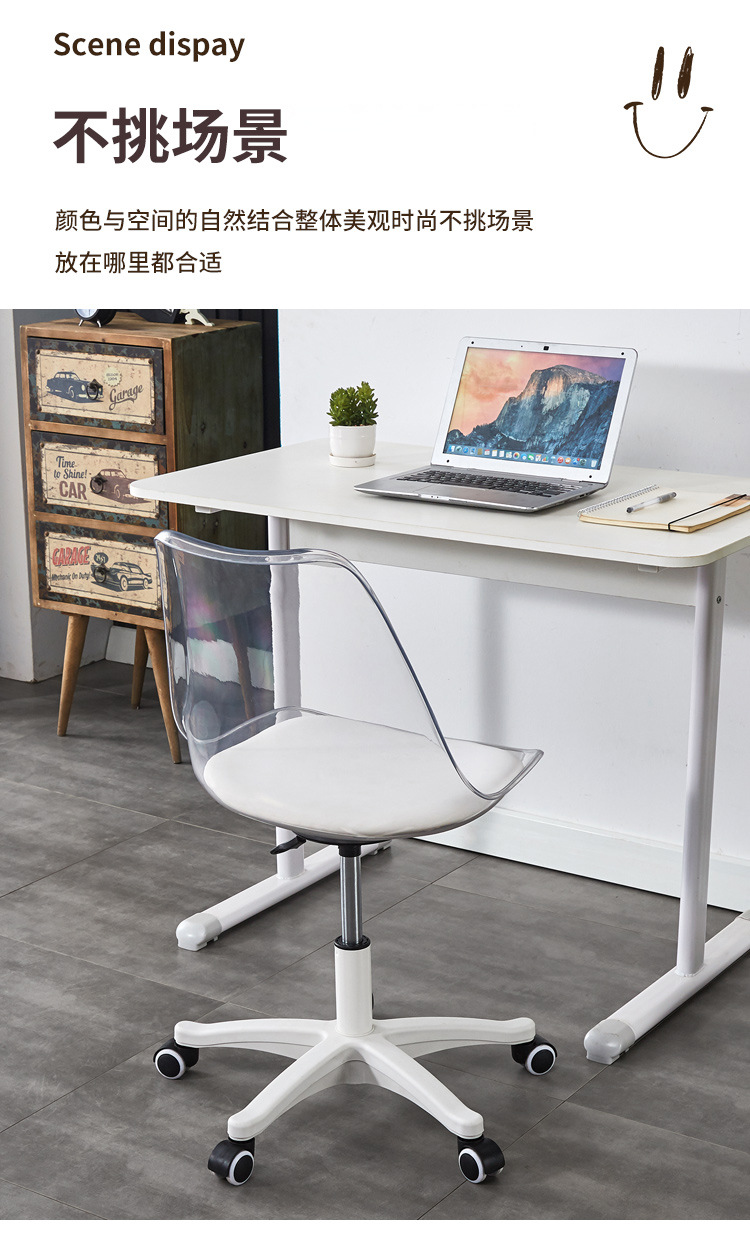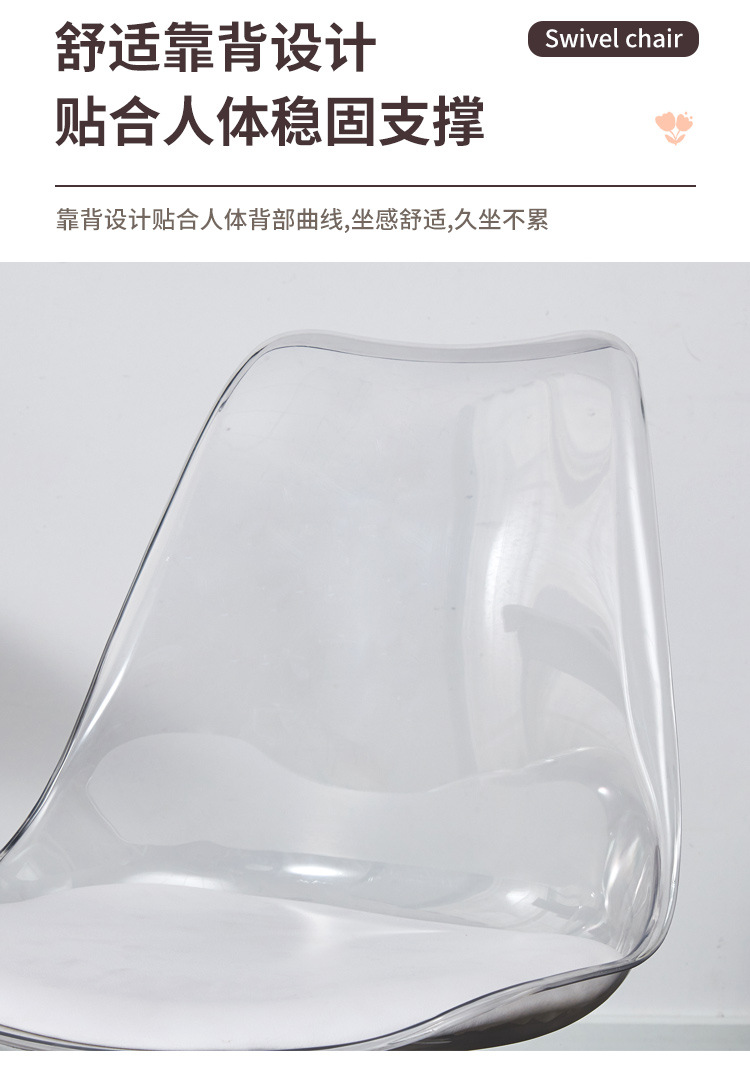 Silla giratoria de Tulip, silla giratoria de oficina, silla de ocio, silla de oficina acrílica transparente de elevación