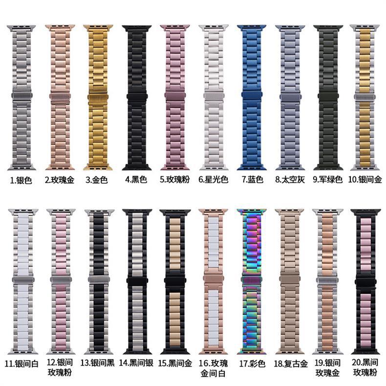 Aplicable AppleWatch tres perlas hebilla plegable de acero correa iWatch Huawei correa de reloj inteligente