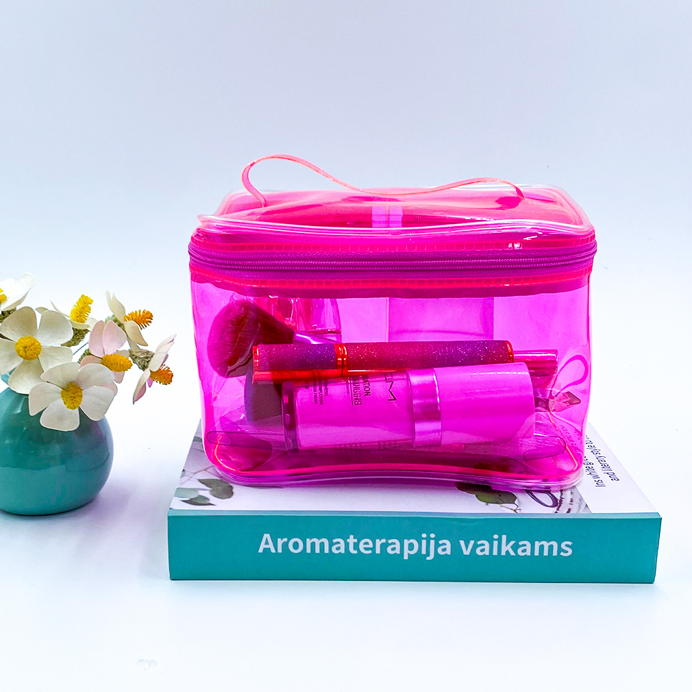 Bolsa de cosméticos portátil transparente de doble capa, gran capacidad, bolsa de aseo portátil impermeable para viajes, cubo de cosméticos transparente de almacenamiento portátil