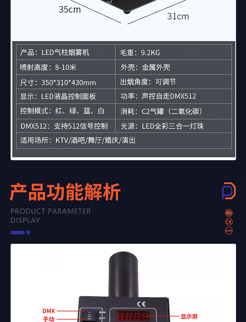 Máquina de columna de gas de dióxido de carbono de Payton LED máquina de columna de gas de color completo barra limpia máquina de chorro de humo de bar máquina de columna de gas de efecto especial de etapa