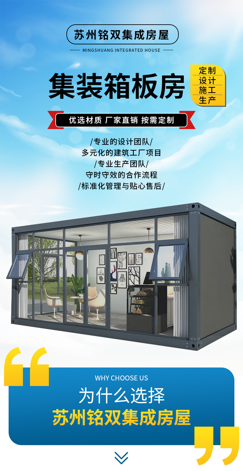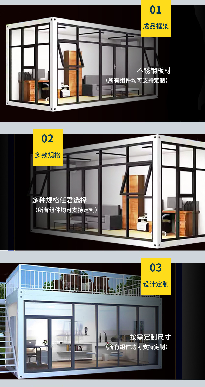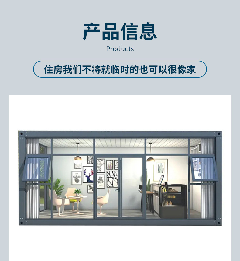 Casa móvil de contenedor con decoración de vivienda temporal casa integrada de pared cortina de vidrio doméstica casa móvil de tablero móvil