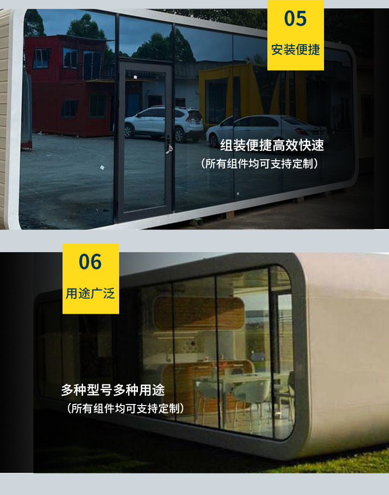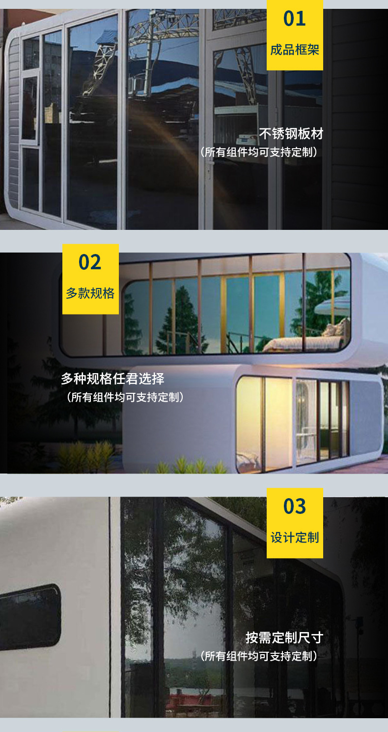Casa móvil de cápsula espacial, granero de manzanas, alojamiento residencial, turismo cultural, camping escénico, hotel, granero de manzanas de observación de estrellas móvil