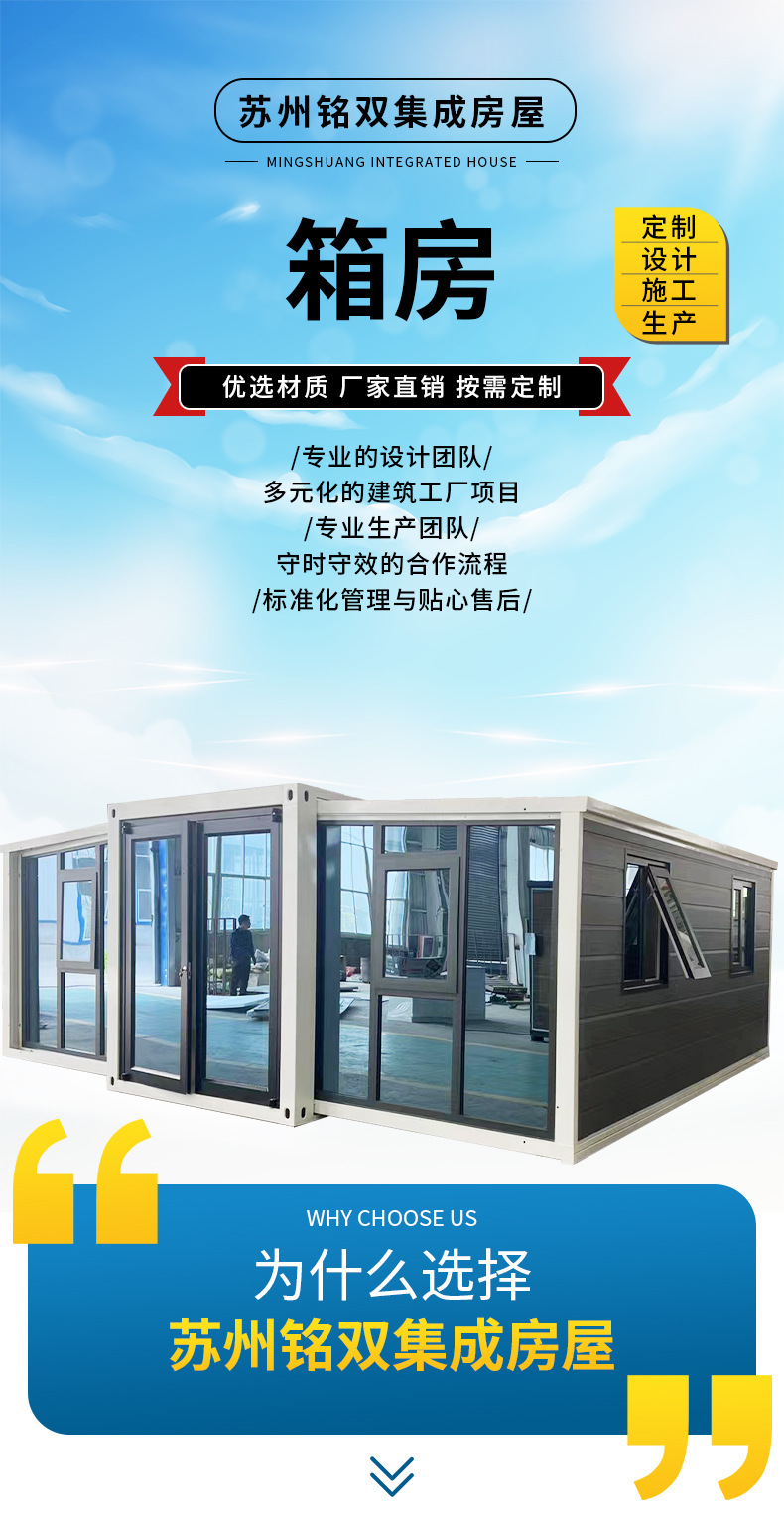 Casas de mariposa transfronterizas de doble ala con caja de expansión plegable con decoración de vivienda móvil alojamiento residencial caja de embalaje