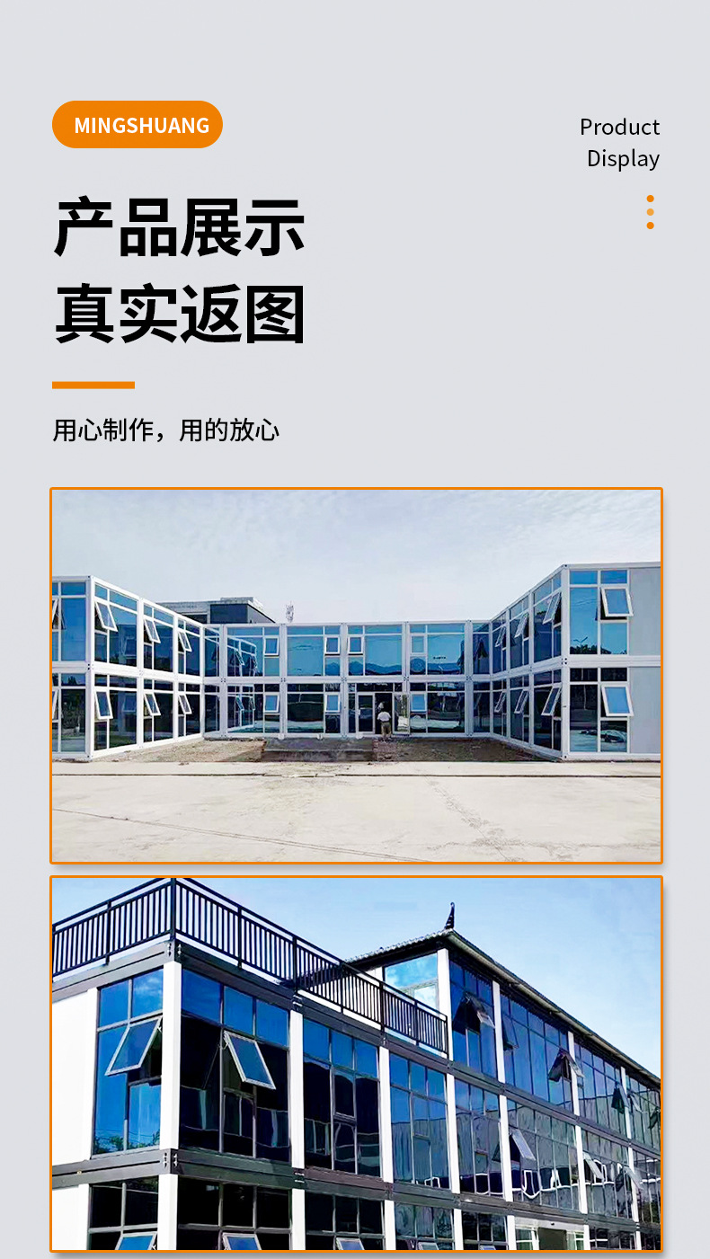 Residente sala de contenedores, sala de embalaje, sala de juntas móvil móvil, edificio de oficinas de vidrio, casa de contenedores de placa de acero de color