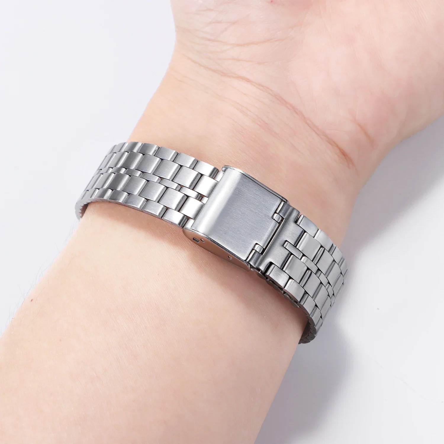 Accesorios de relojes electrónicos adaptados AE1200 / 1300 A159 / 158 F91 correa de acero sólido de bloque pequeño 18mm