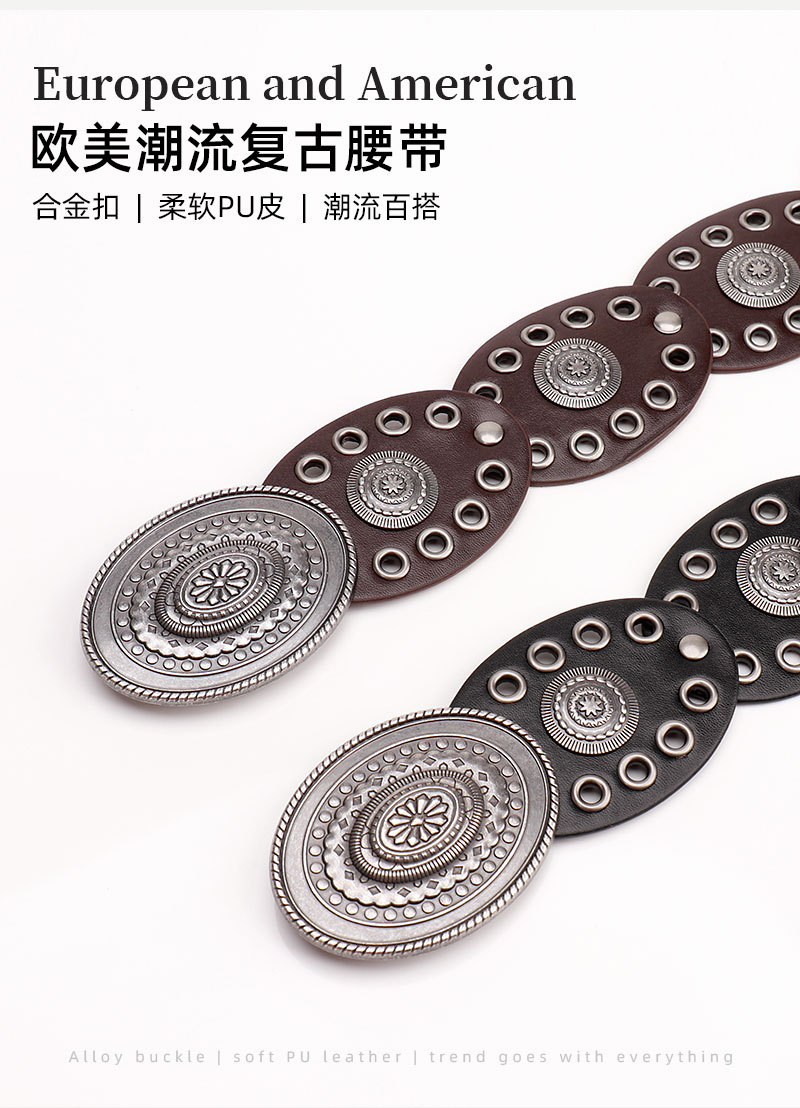 Cinturón punk con medallones y hebilla de aleación