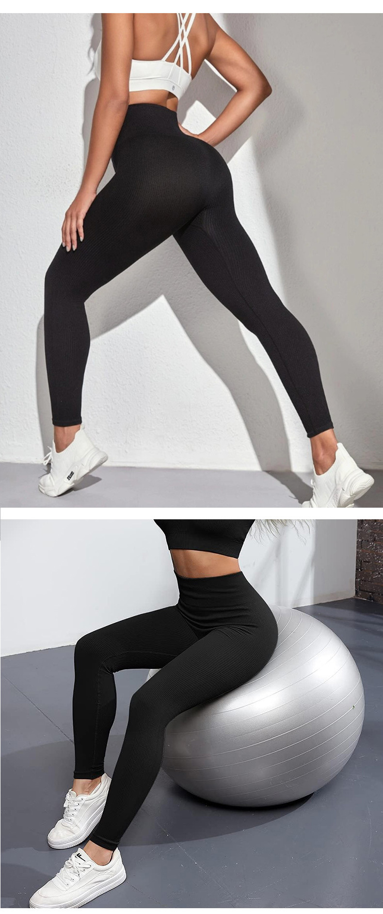 Pantalones cortos y largos de mujer ajustados y acanalados de estilo europeo y americano, de alta elasticidad, color liso, efecto levantamiento de glúteos, leggings de yoga y fitness.