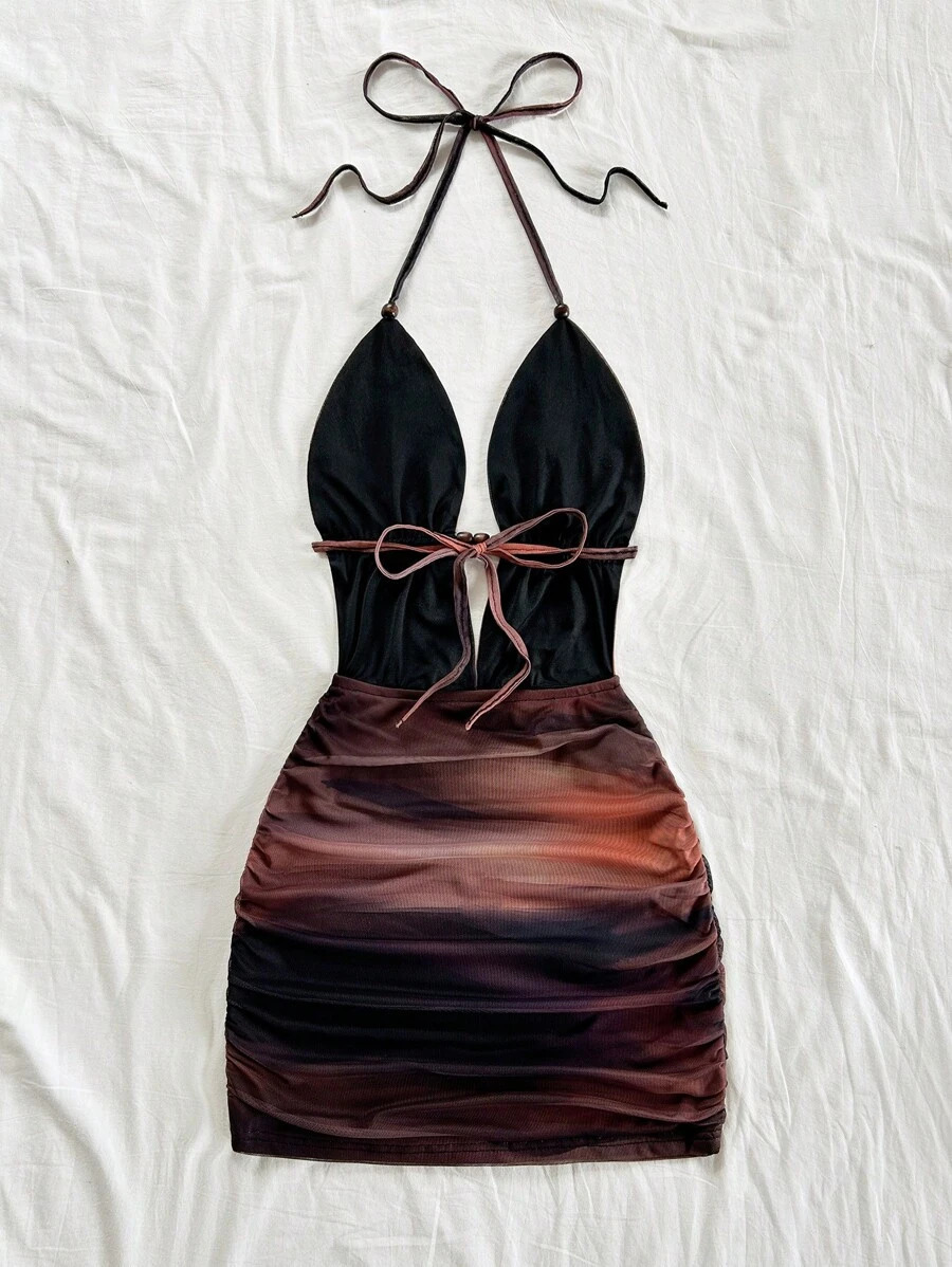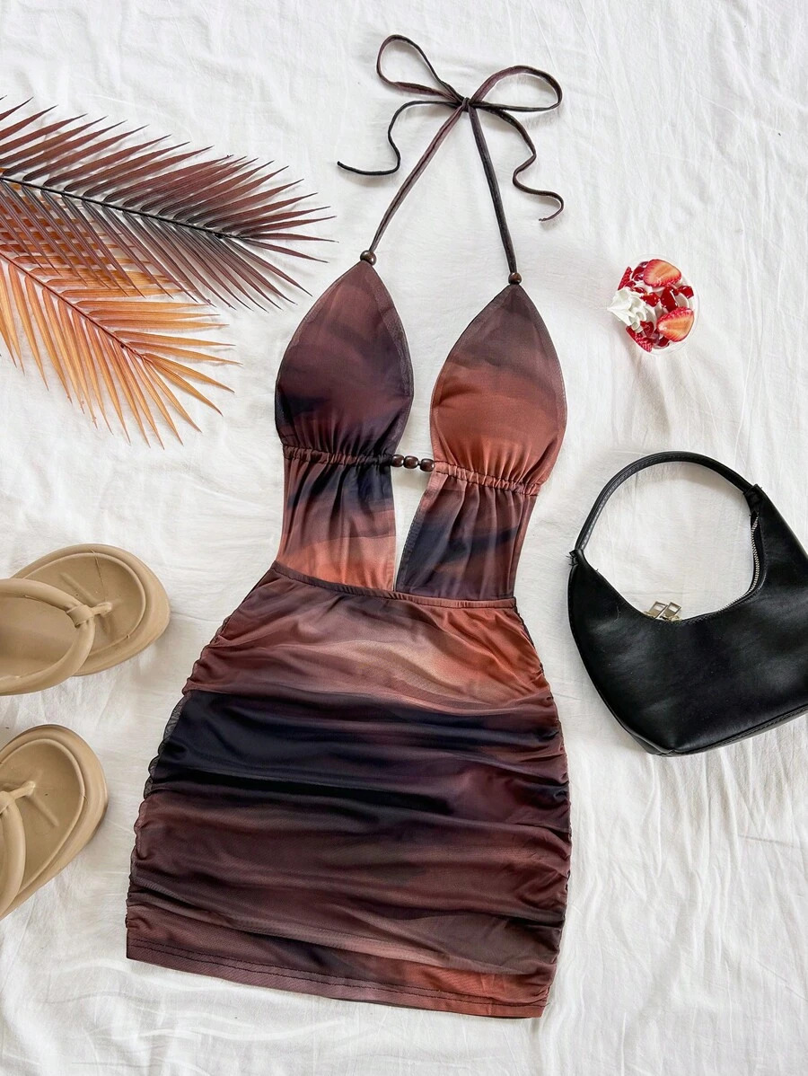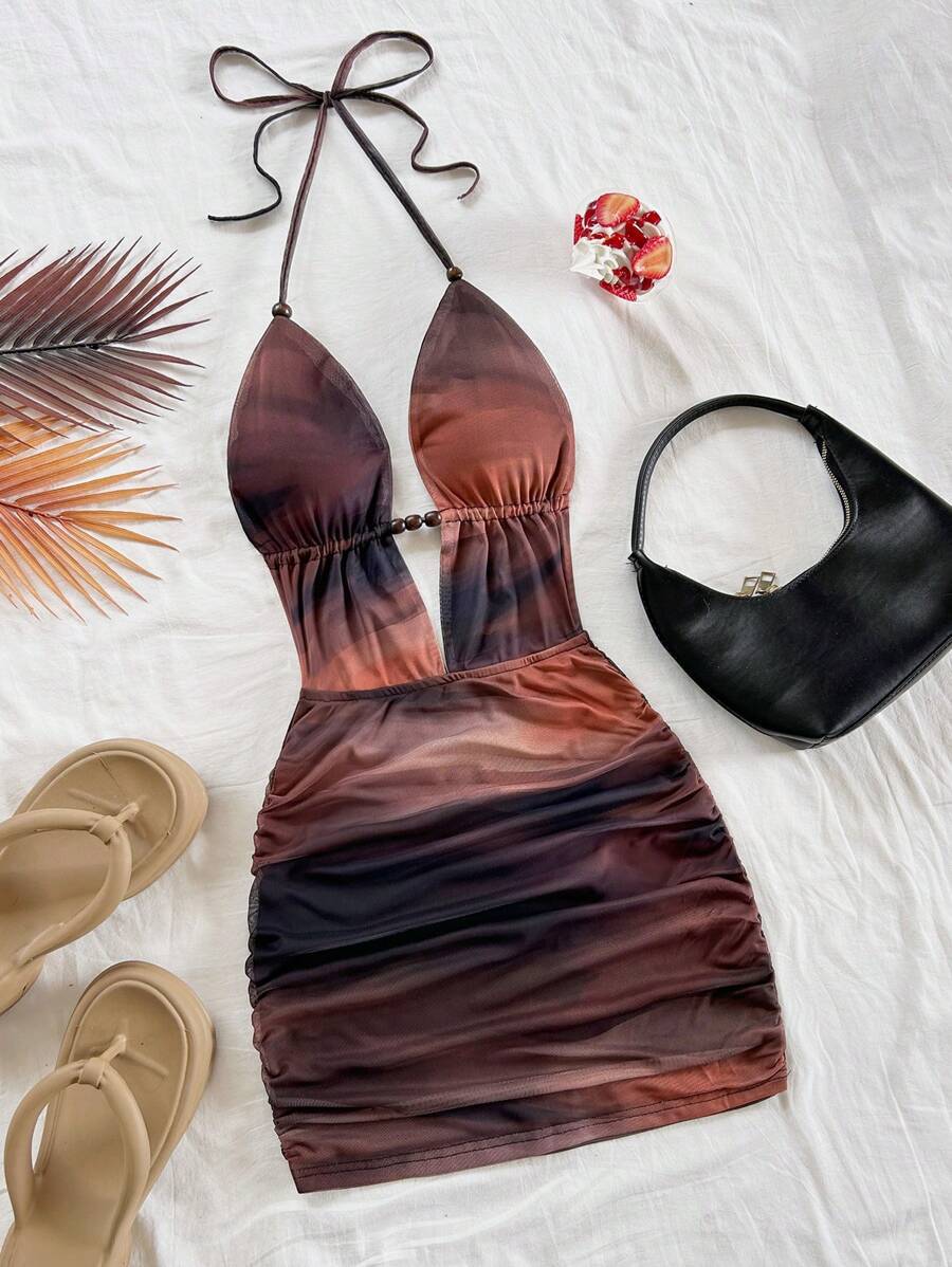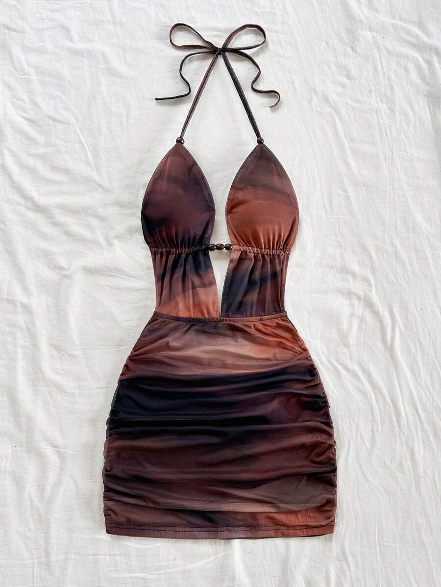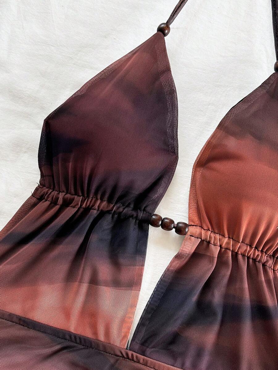 T 14213 Aliexpress nuevo comercio exterior transfronterizo retro teñido impresión abstracta profunda V-collar
