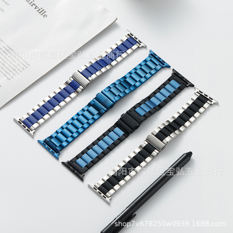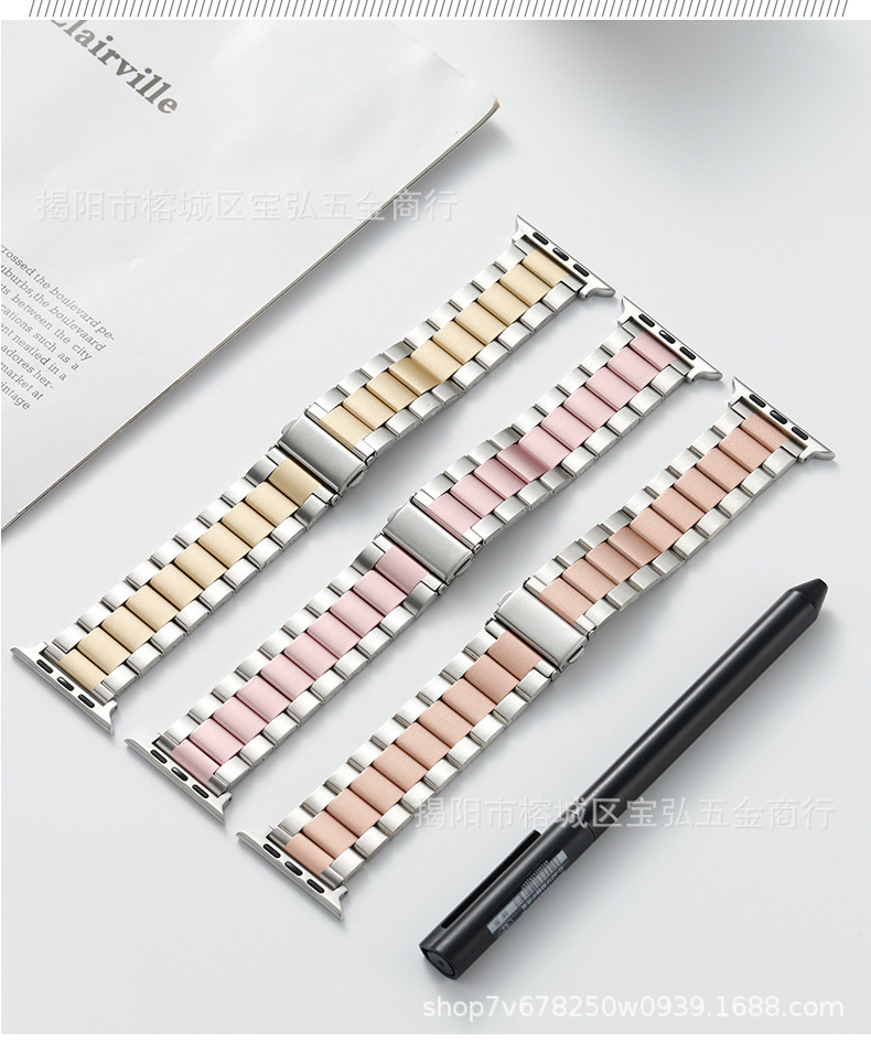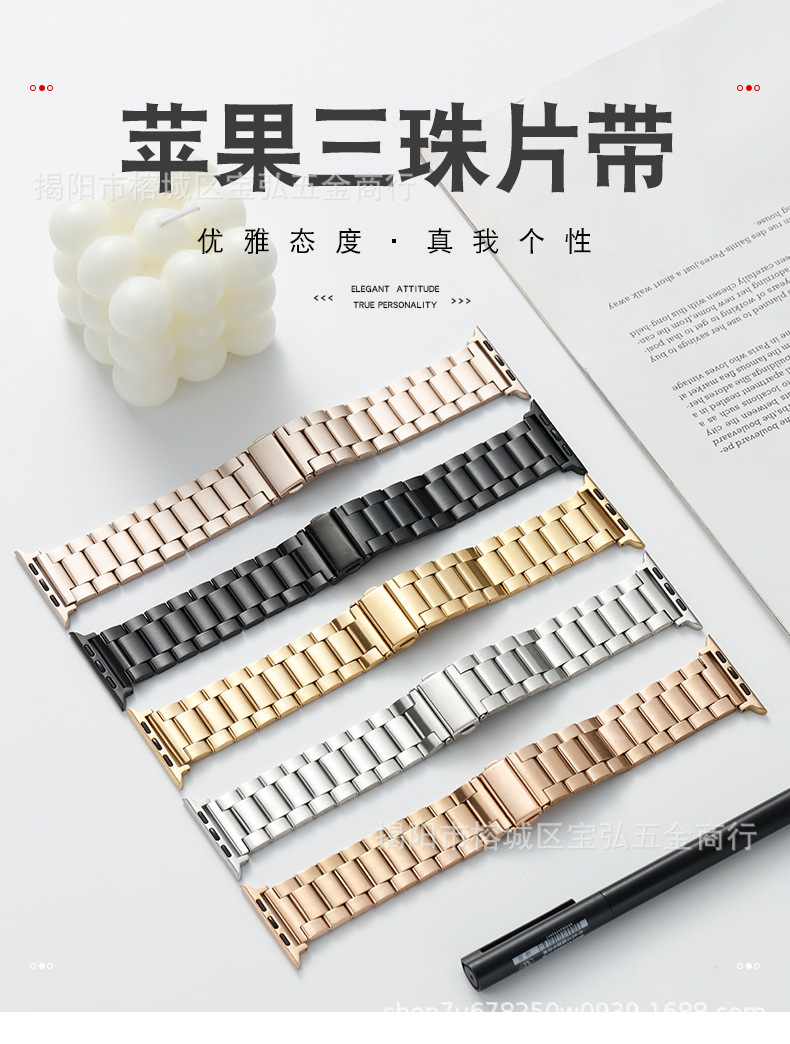 Aplicable Apple iwatch tres perlas Apple Watch correa Huawei gt4 acero inoxidable tres perlas correa